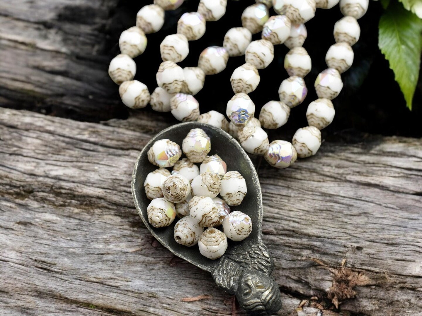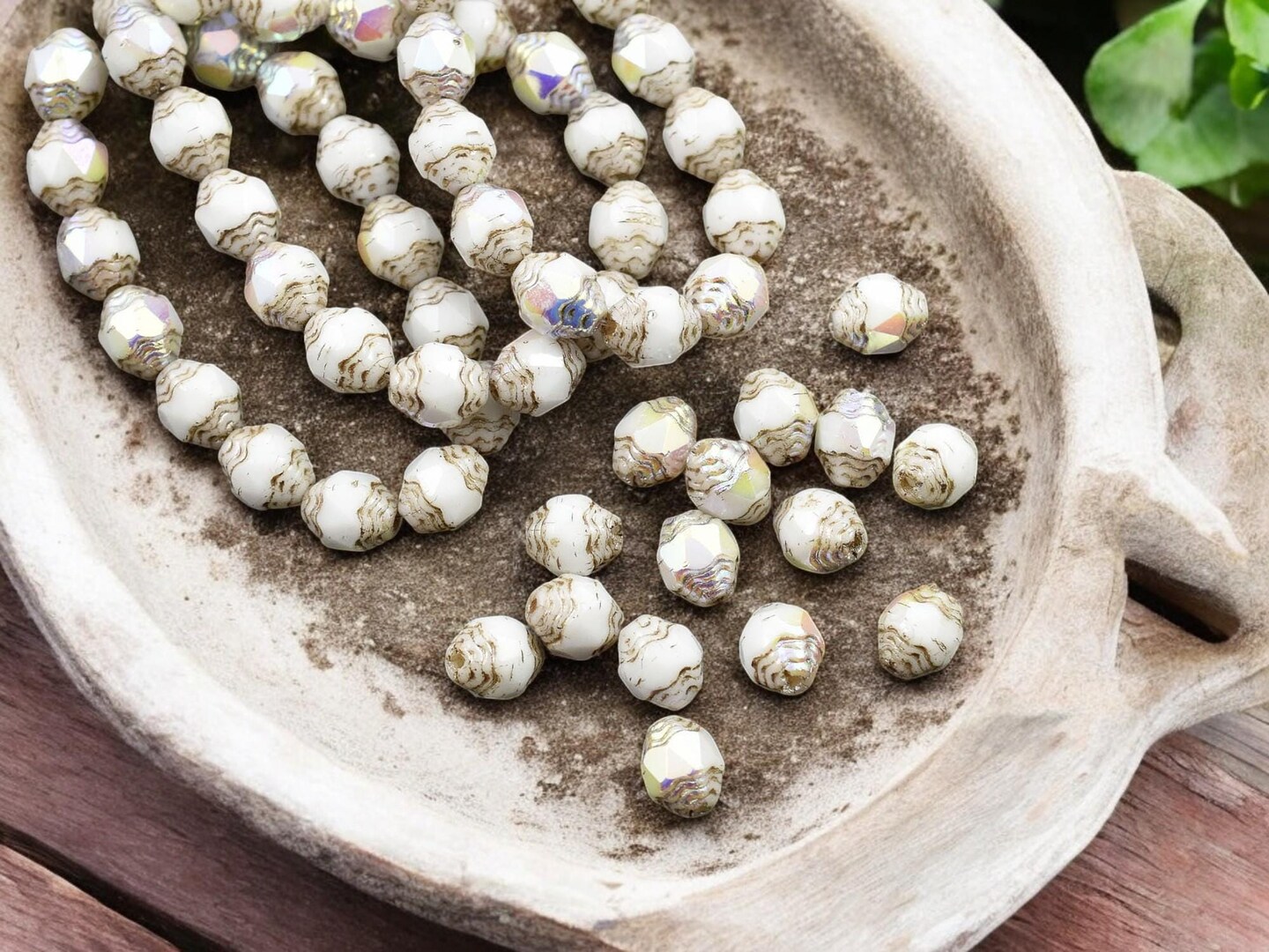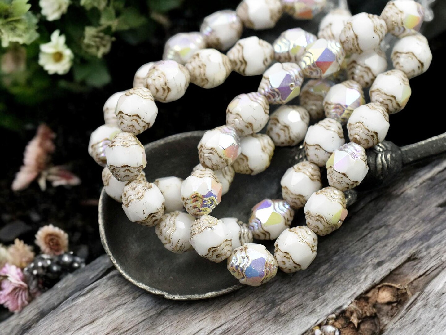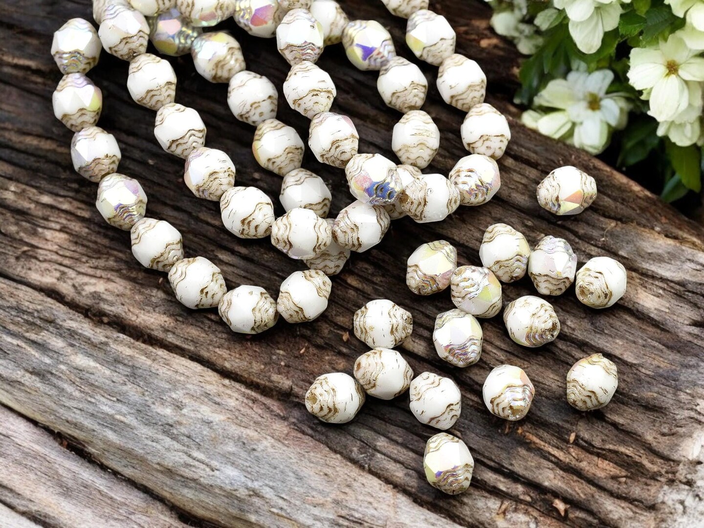*15* 6x8mm Platinum Washed Opaque White AB Oval Cathedral Beads
