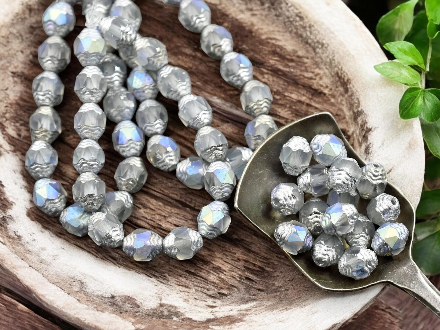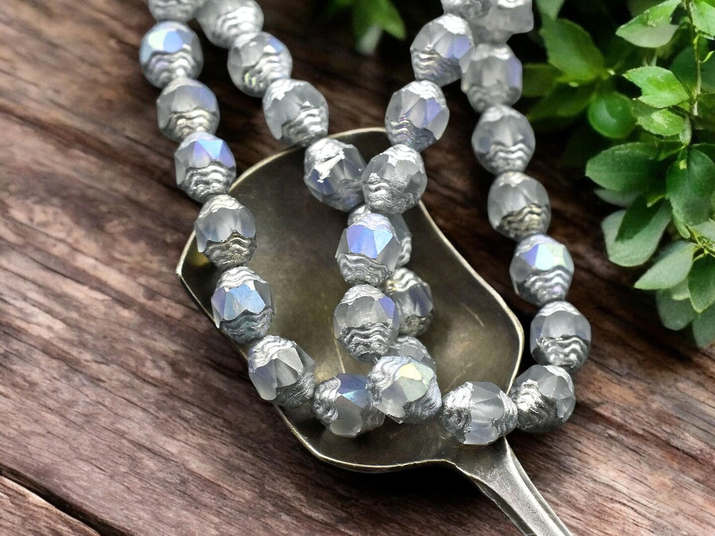 *15* 6x8mm Silver Washed Matte Crystal AB Oval Cathedral Beads