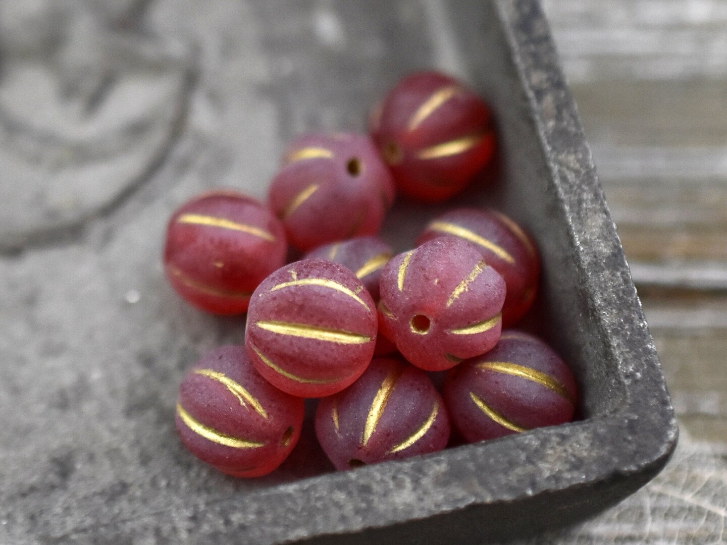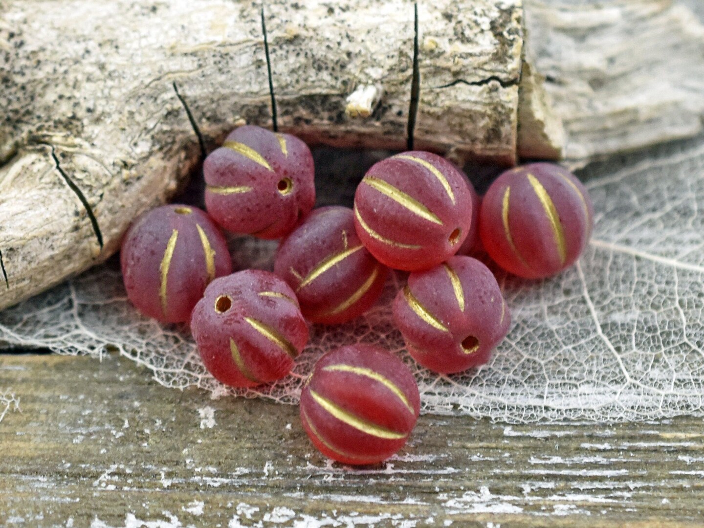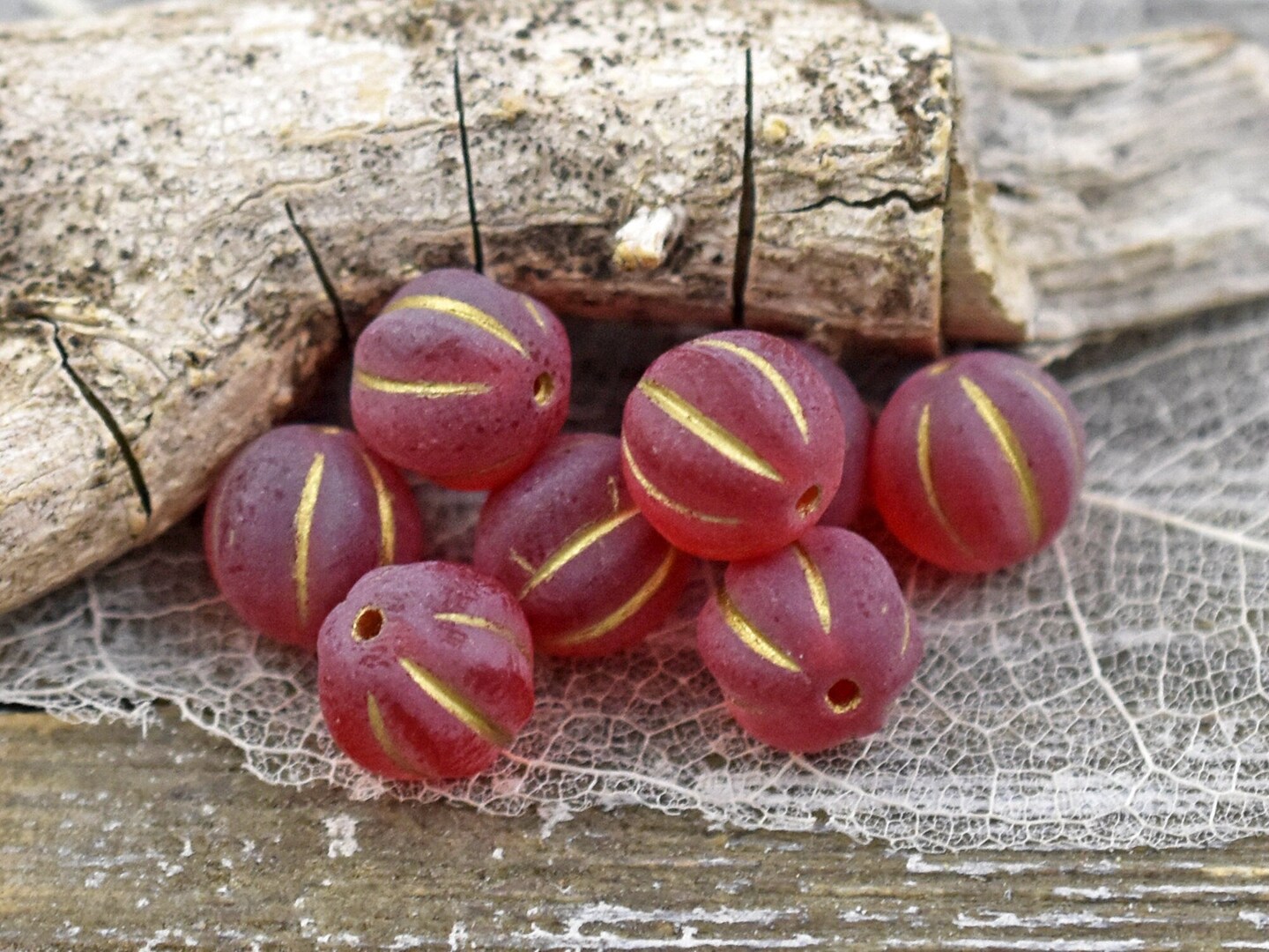*15* 8mm Bronze Washed Matte Ruby Red Round Melon Beads