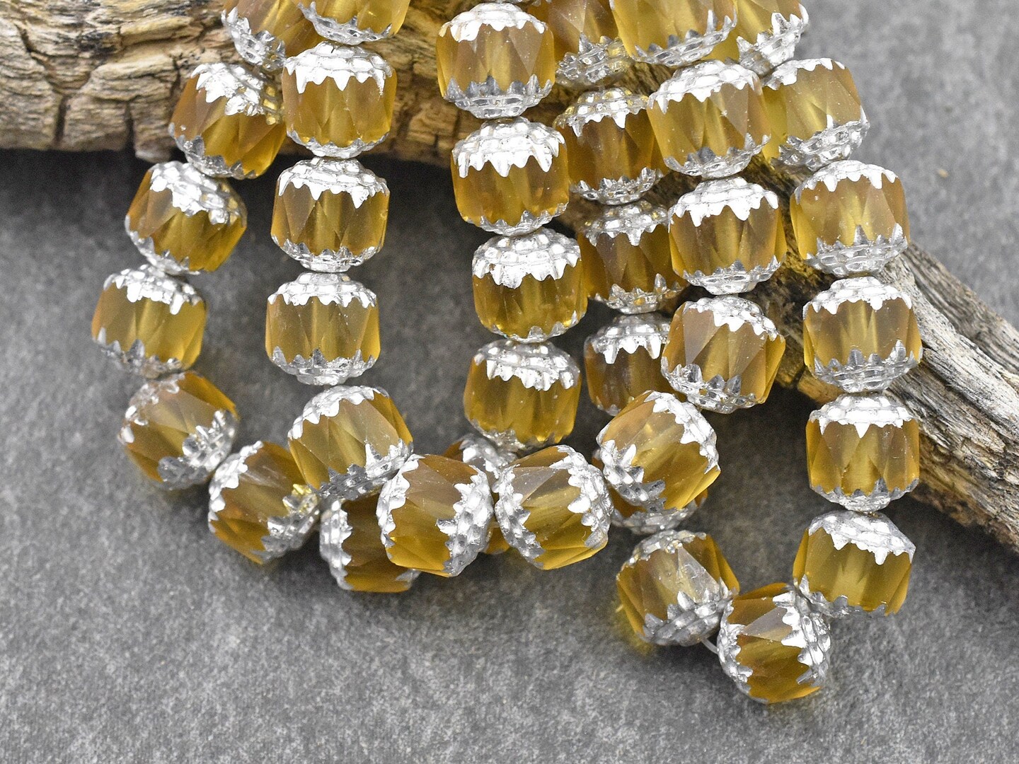 *15* 8mm Silver Washed Yellow Topaz Fire Polished Cathedral Beads