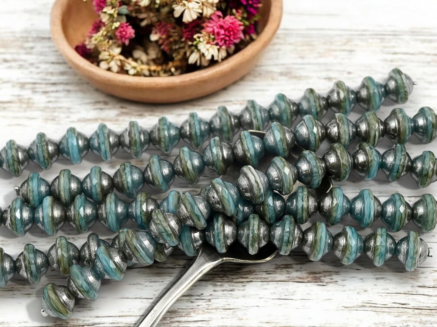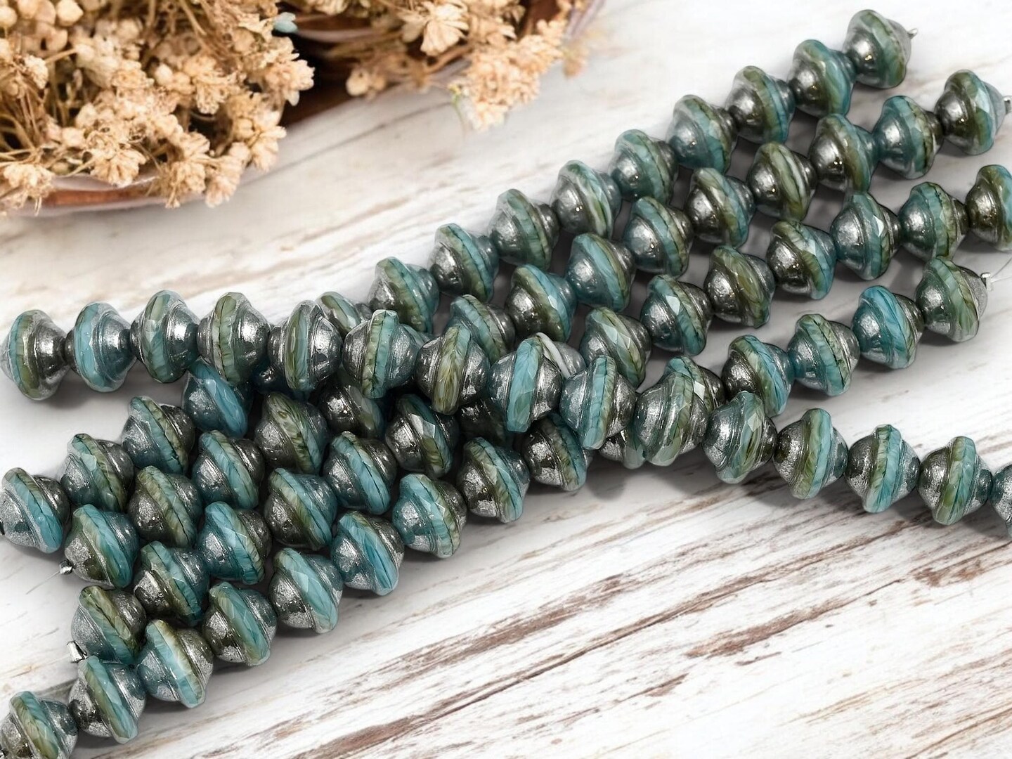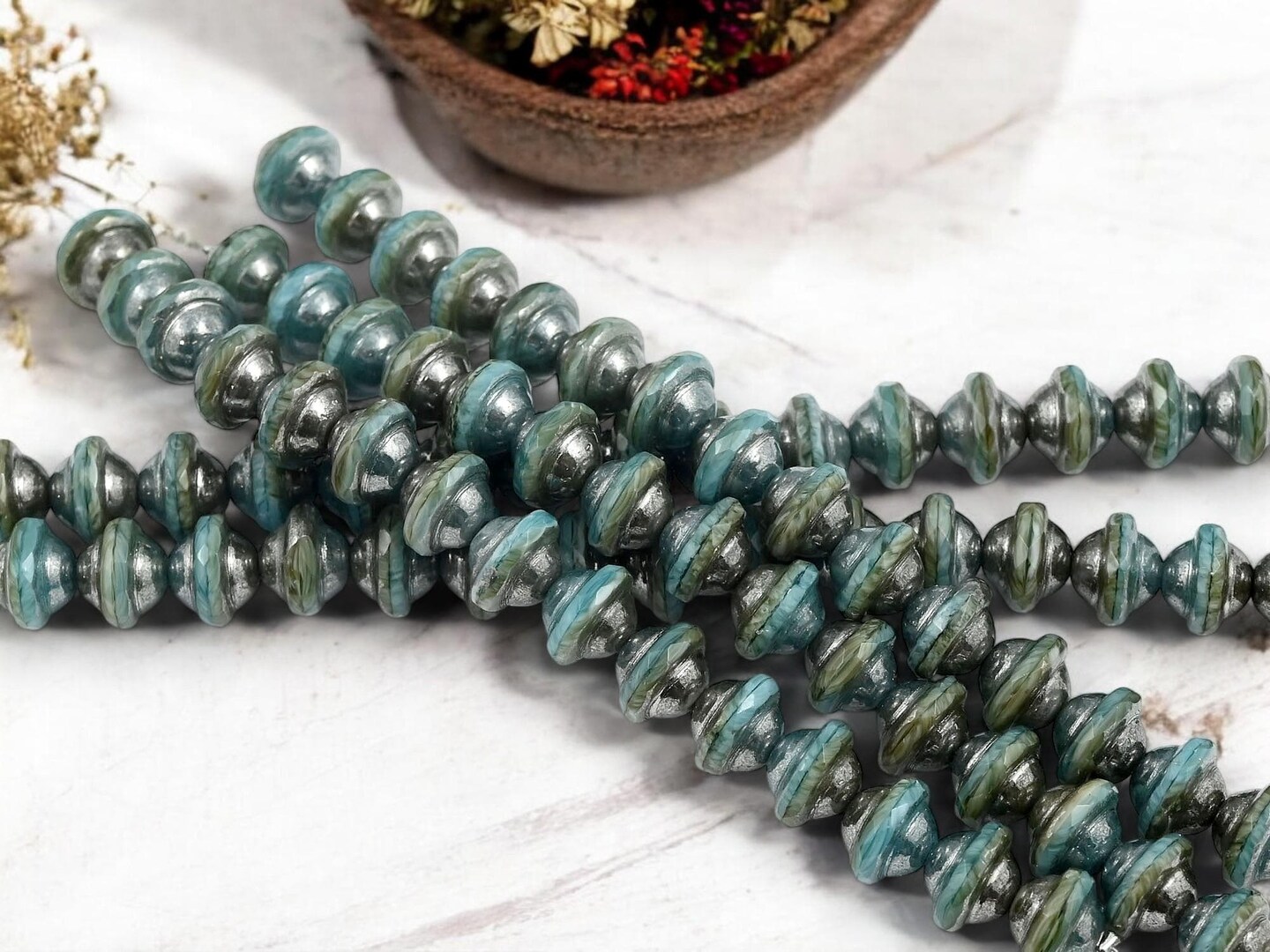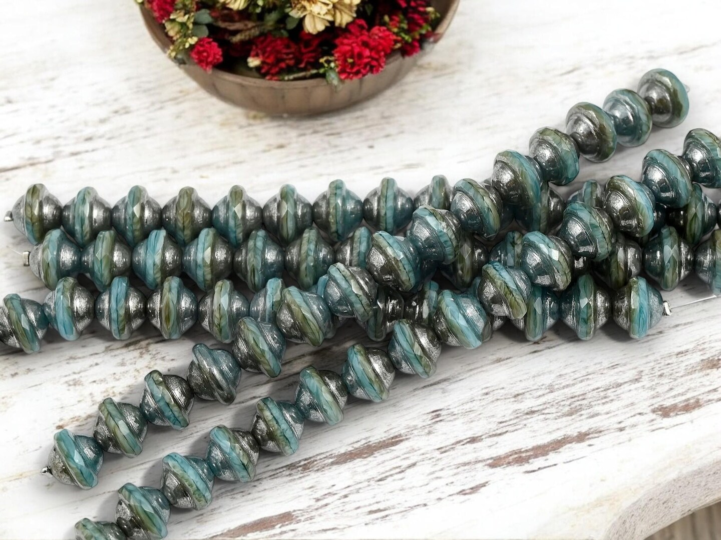 *15* 8x10mm Hematite Washed Blended Teal Saturn Beads