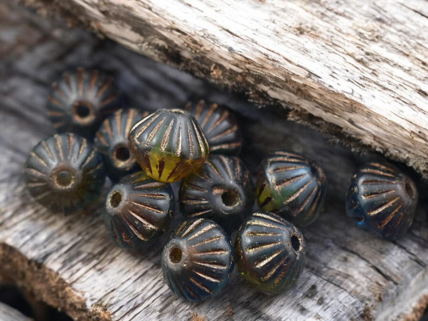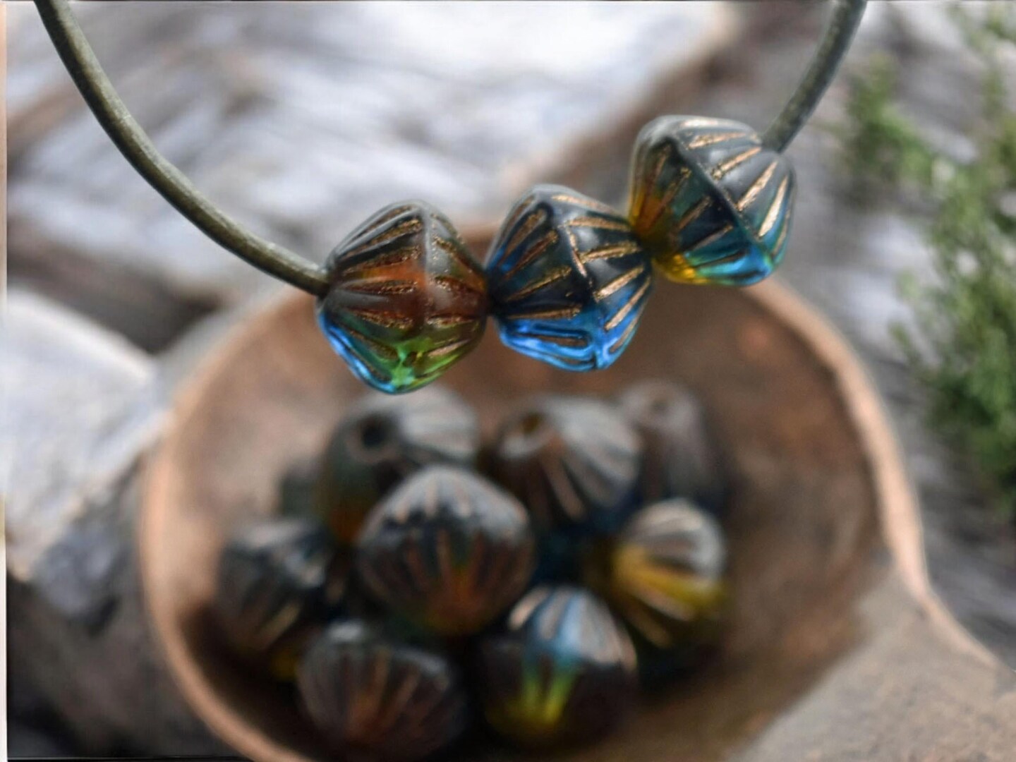 *15* 9mm Bronze Washed Amber Teal Large Hole Bicone Beads