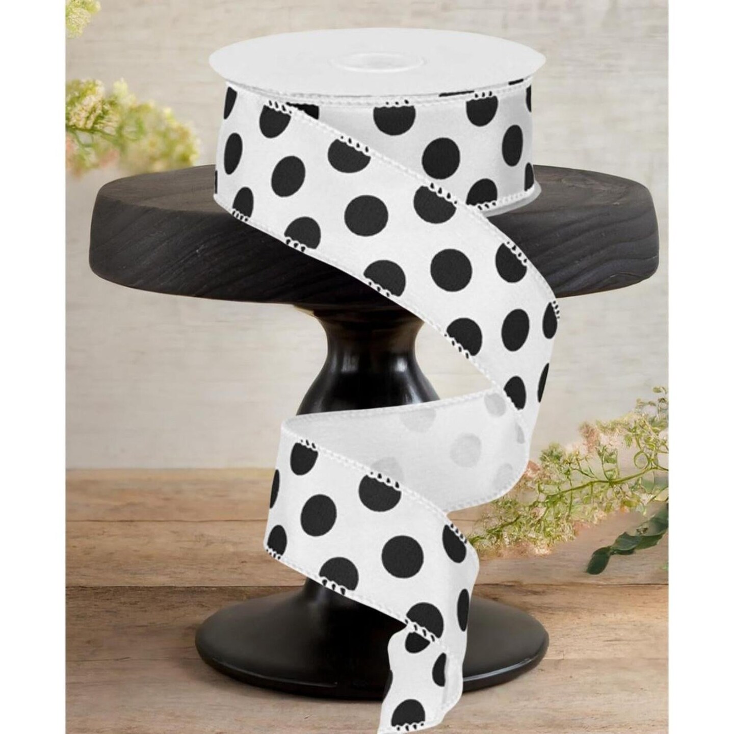 1.5" Big Polka Dot Ribbon: White & Black (10 Yards)