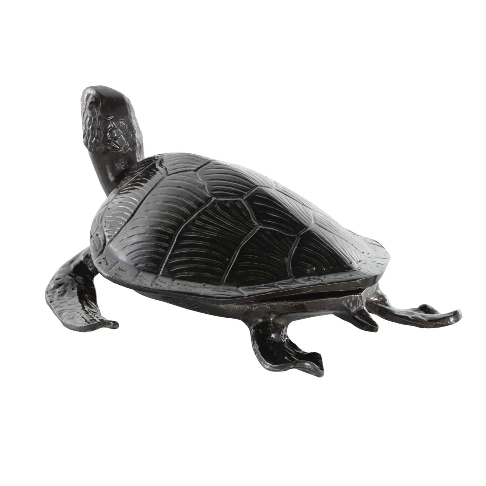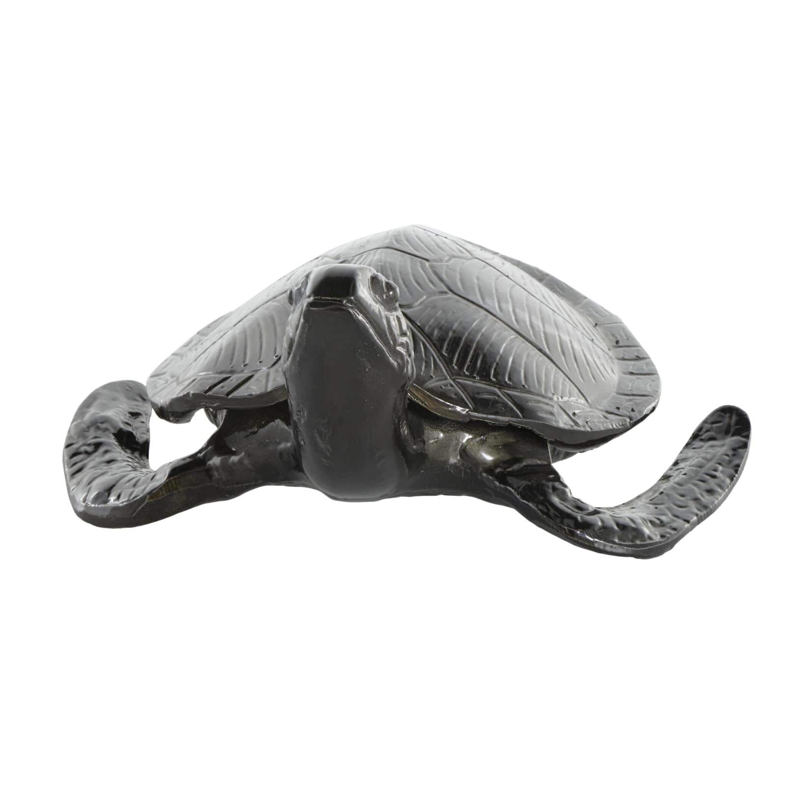15" Black Carved Aluminum Sea Turtle Sculpture