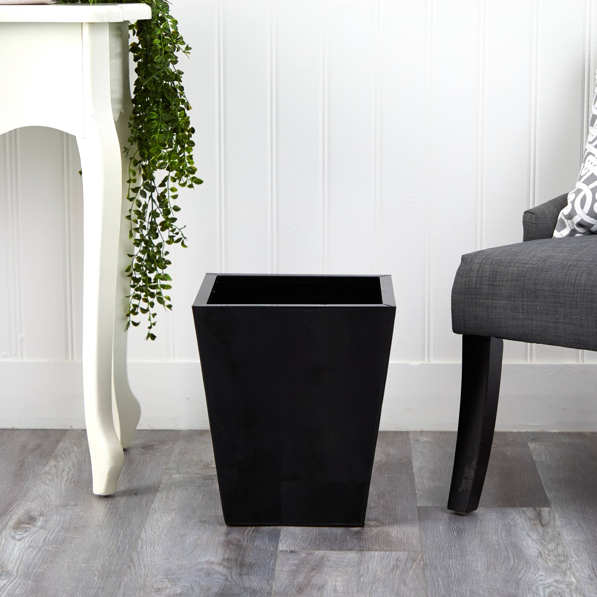 15" Black Classic Square Metal Planter