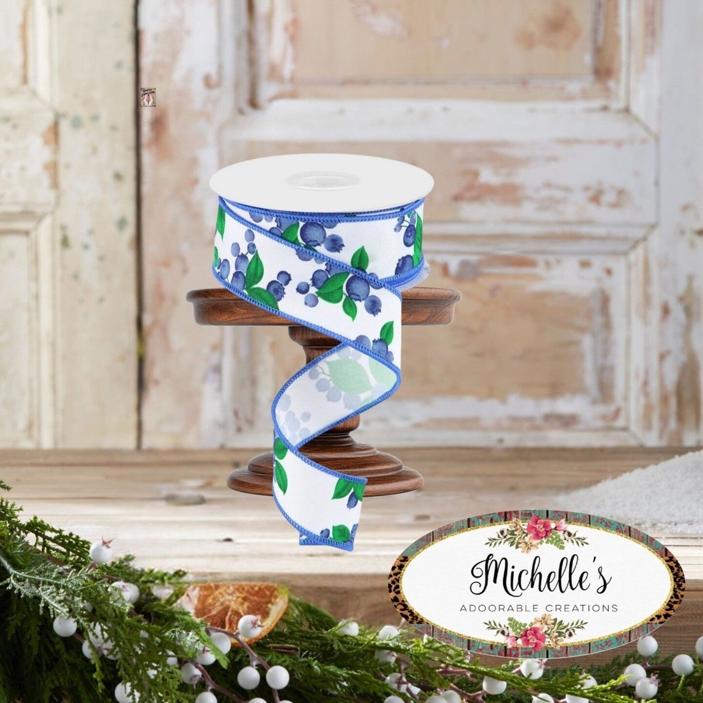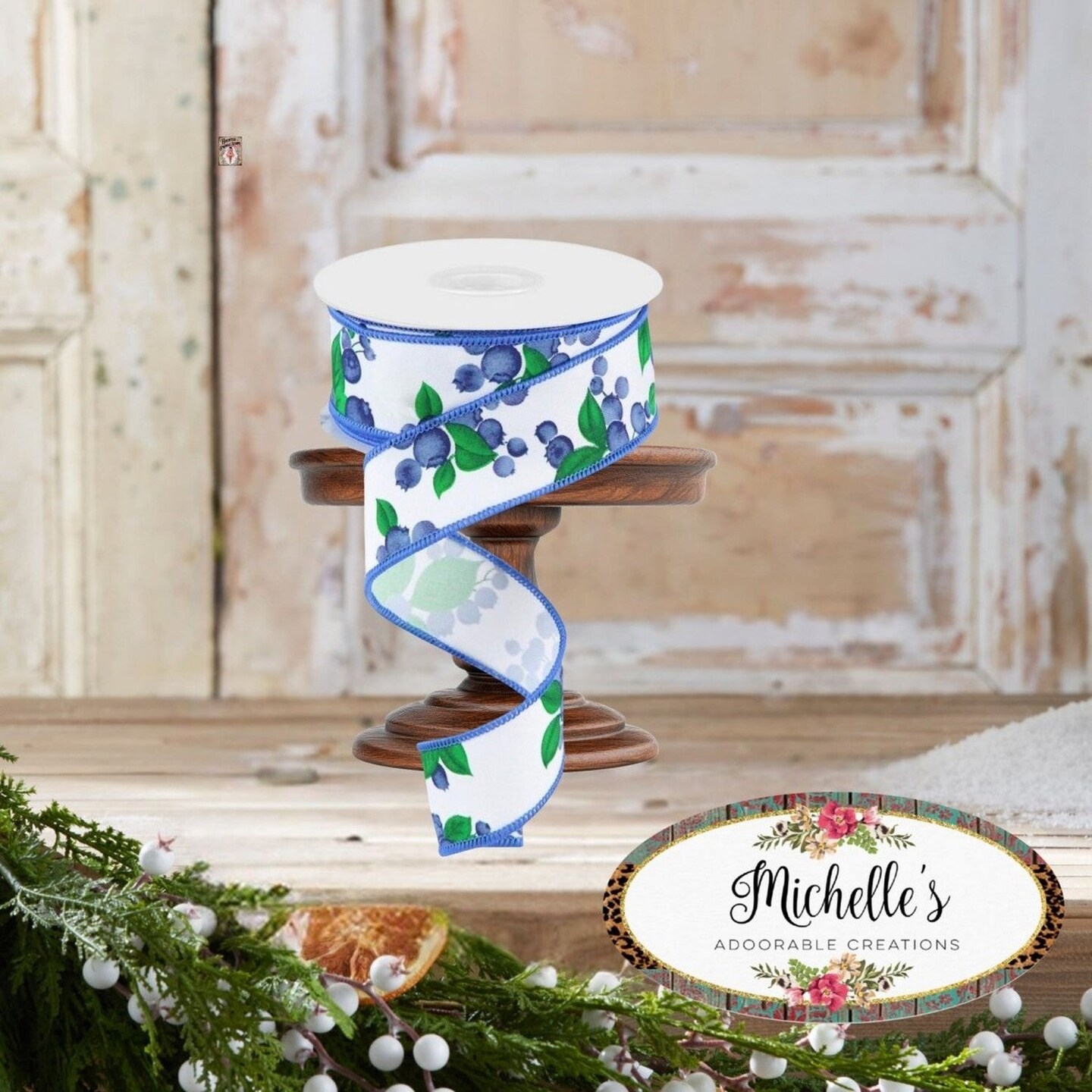 1.5" Blueberry Ribbon: White (10 Yards)