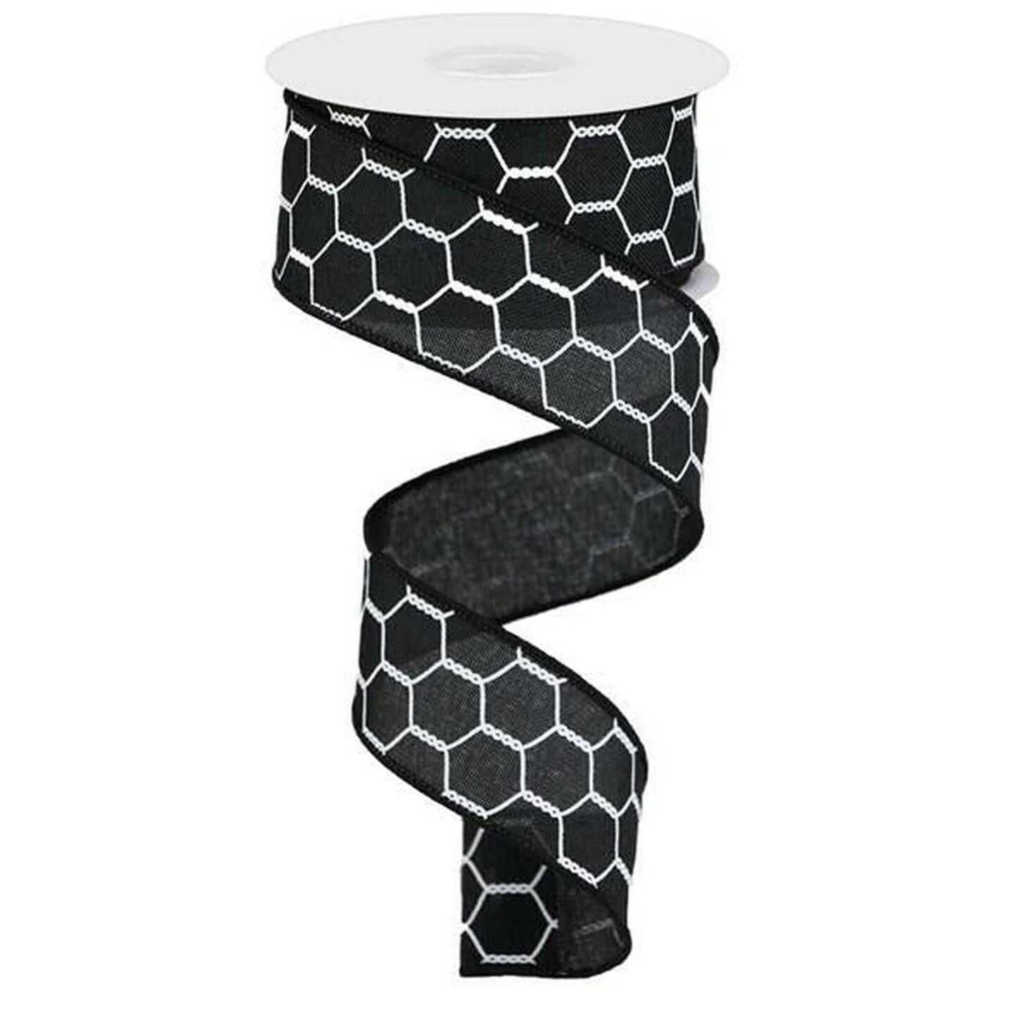 1.5" Chicken Wire Royal Ribbon: Black/White (10 Yards)
