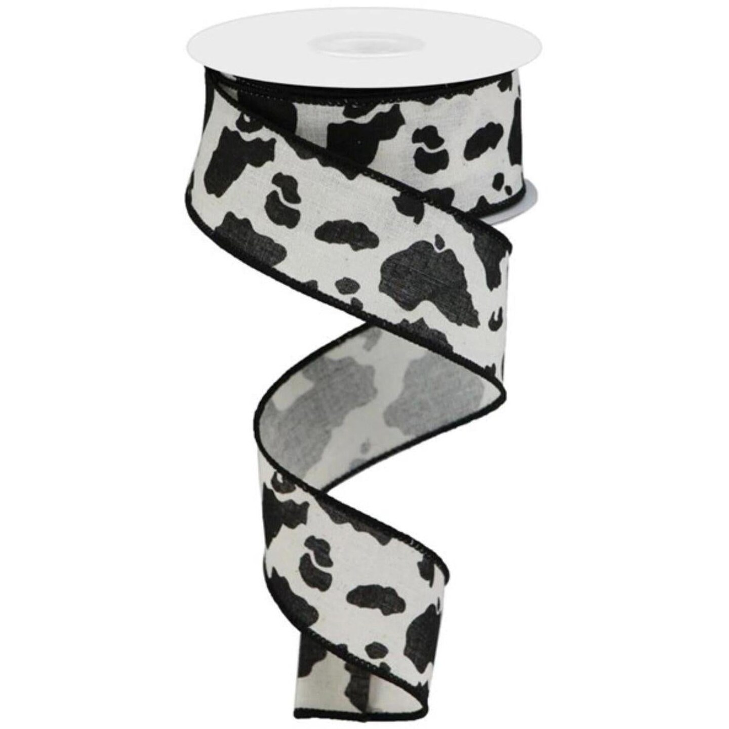 1.5" Cowhide Print Ribbon: Black & Cream (10 Yards)