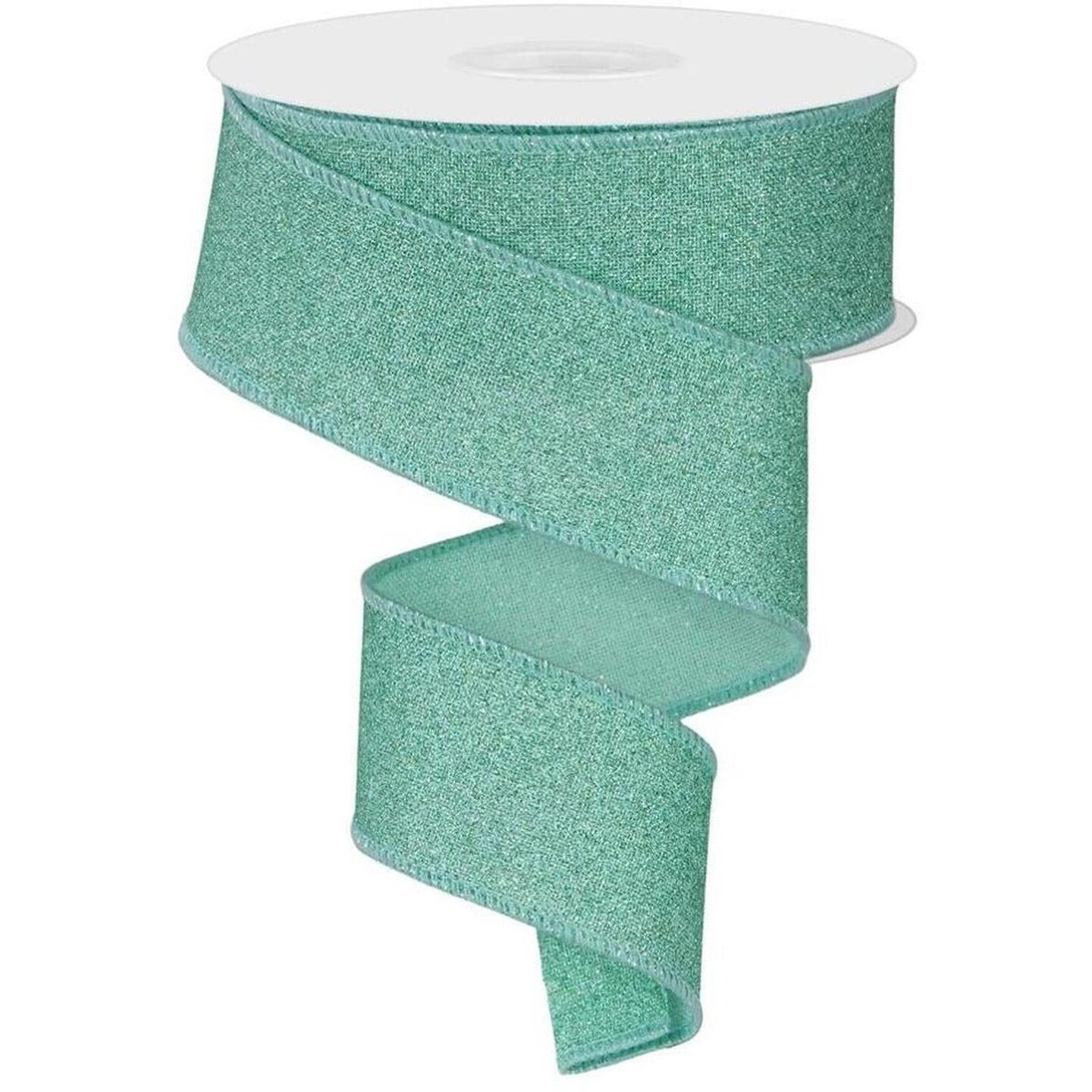 1.5" Fine Glitter on Royal Ribbon: Mint Green (10 Yards)