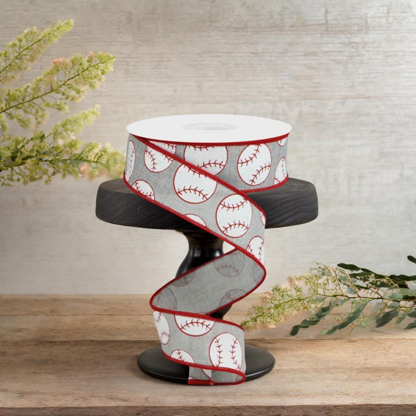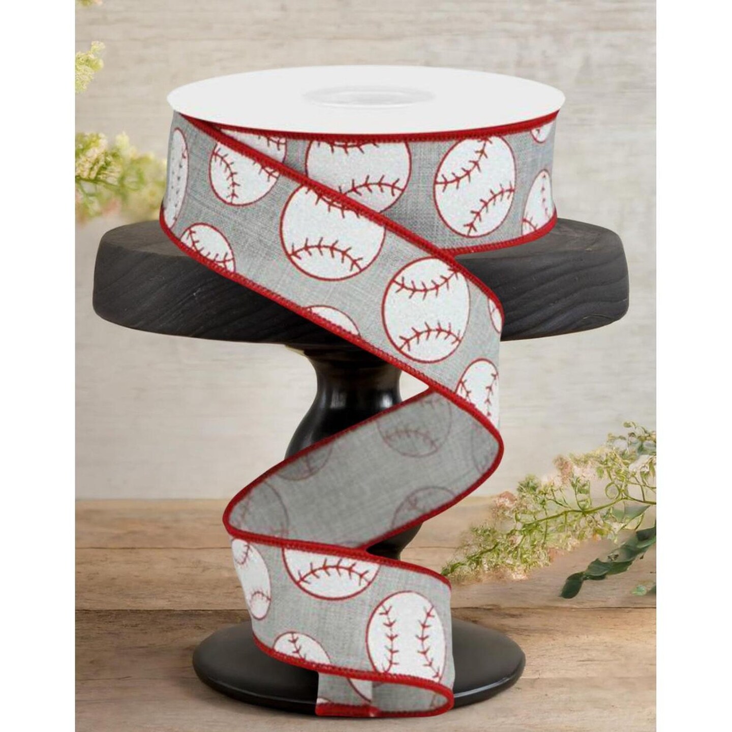 1.5" Glitter Baseball on Royal Ribbon: Gray (10 Yards)