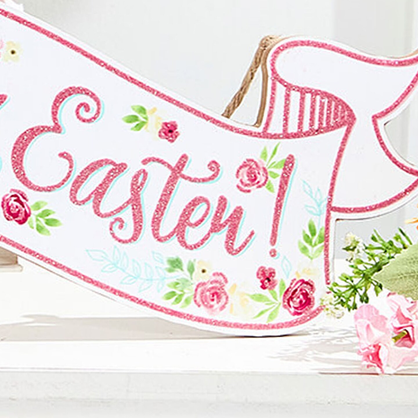 15” Glitter "Happy Easter" Banner Sign Sparkling Spring Wall or Party Decoration
