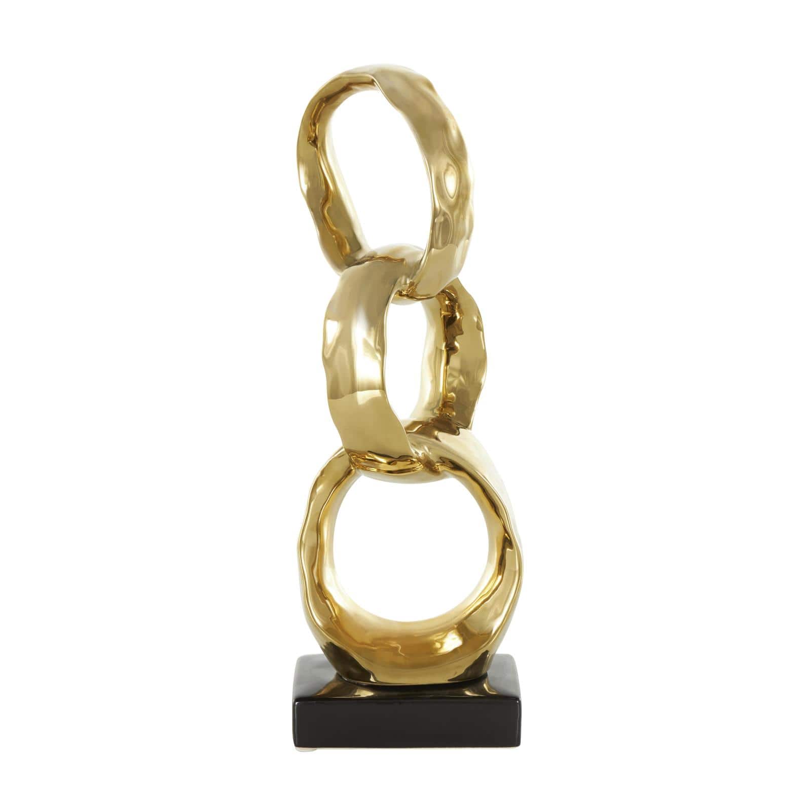 15" Gold Abstract Interlocked Rings Ceramic Sculpture with Black Base