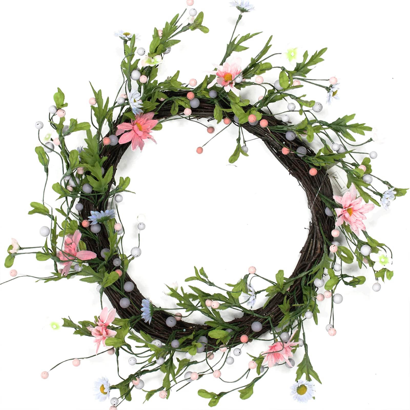 15" Green, Pink, and Purple Artificial Spring Floral Twig Wreath