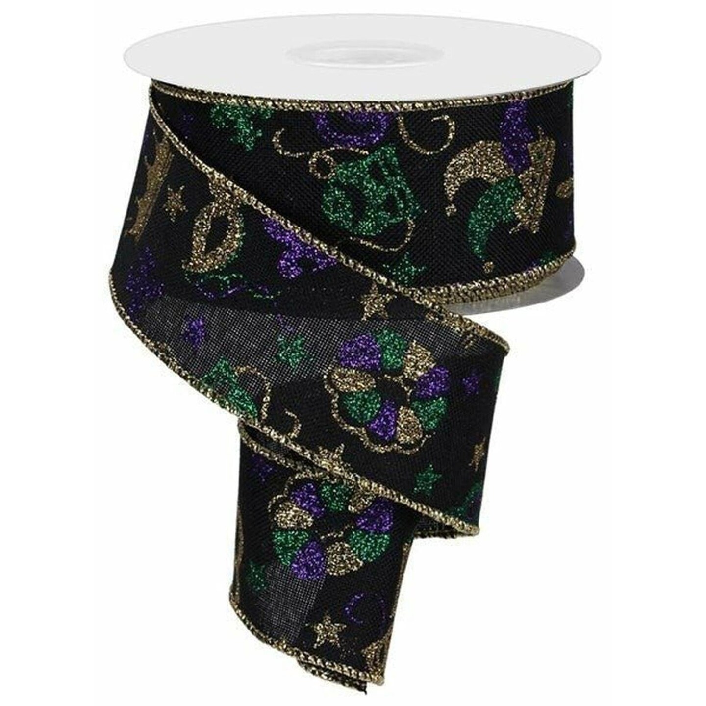 1.5" Mardi Gras Pattern Ribbon: Black (10 Yards)