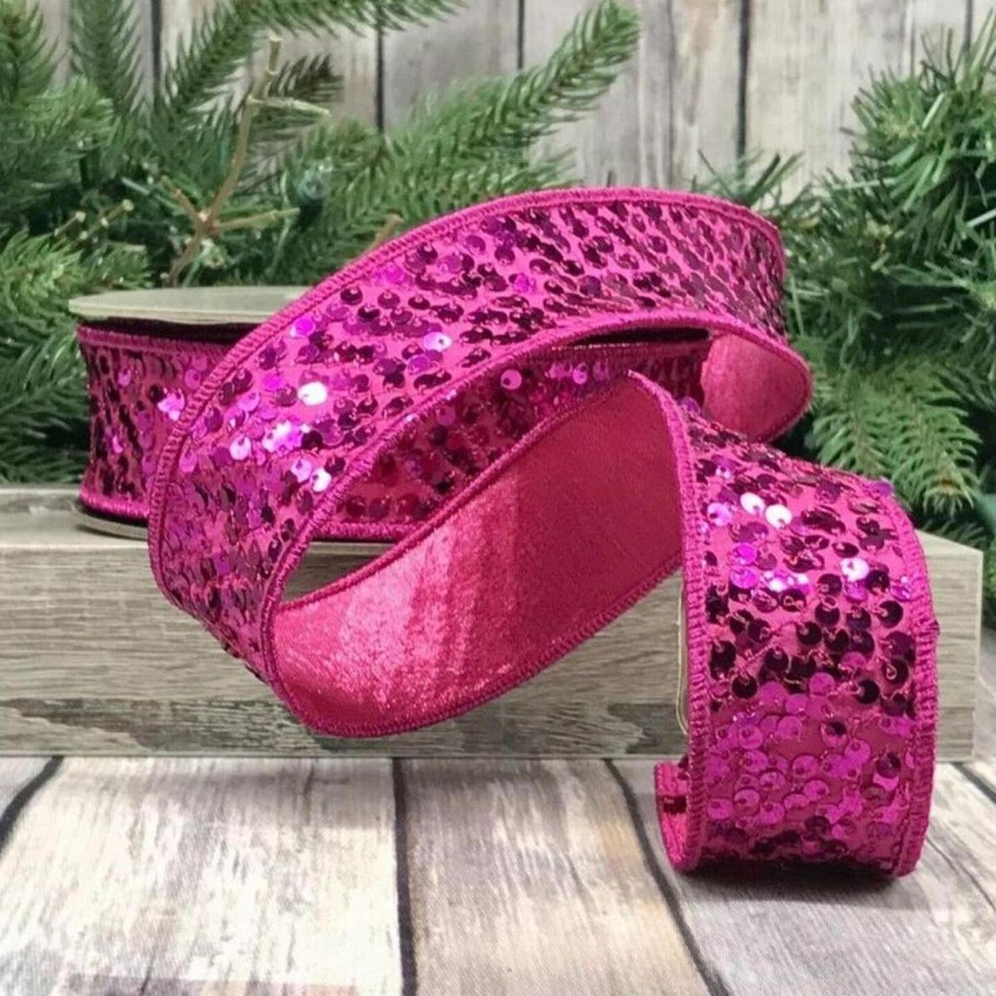 1.5" Metallic Sequin Ribbon: Hot Pink (10 Yards)