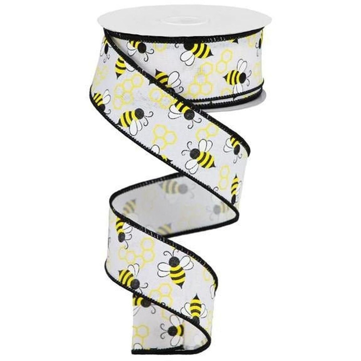 1.5" Mini Bumblebees on Royal Ribbon: White (10 Yards)