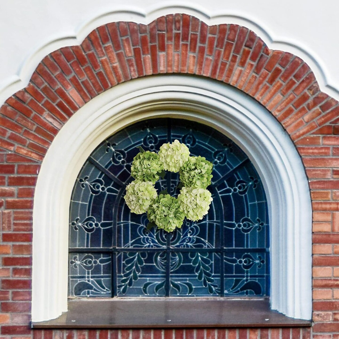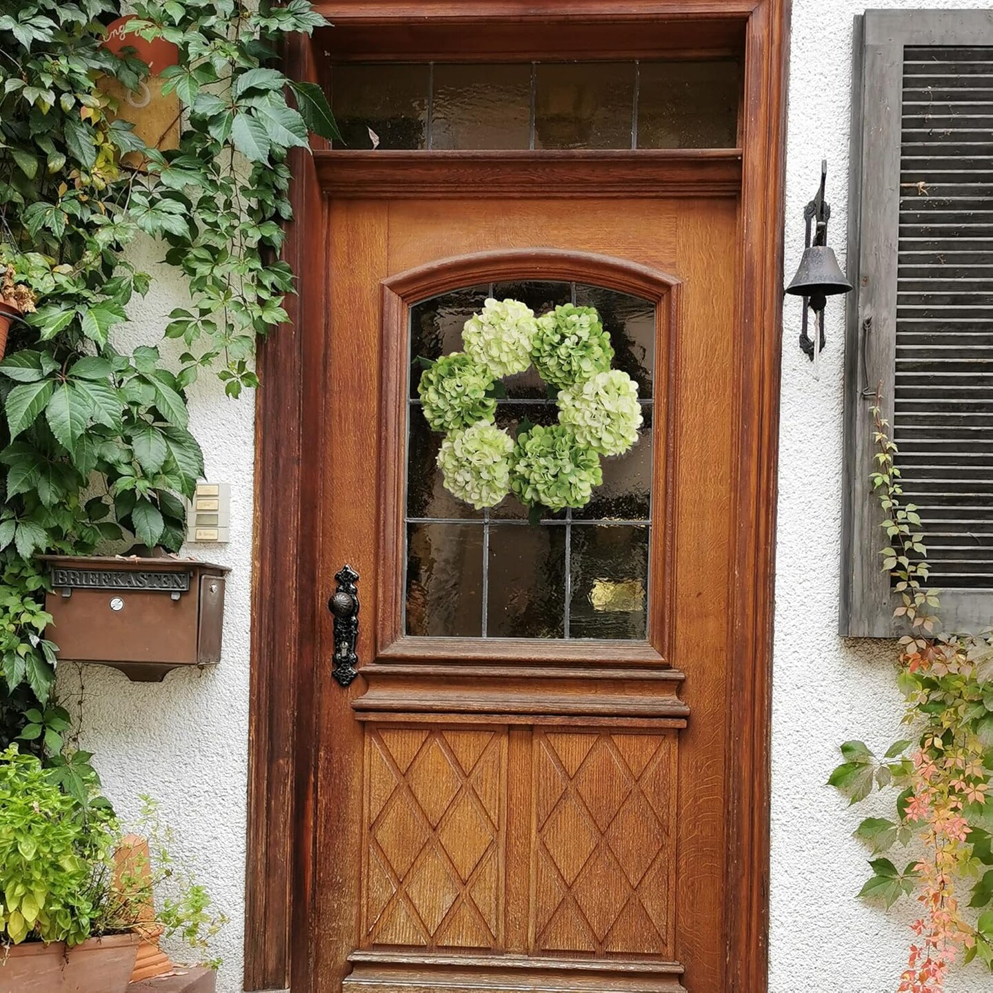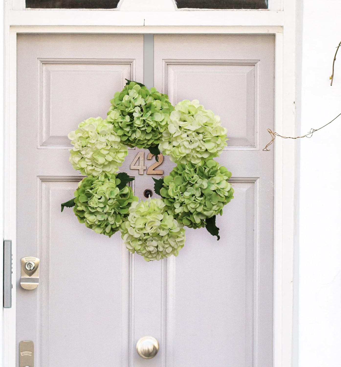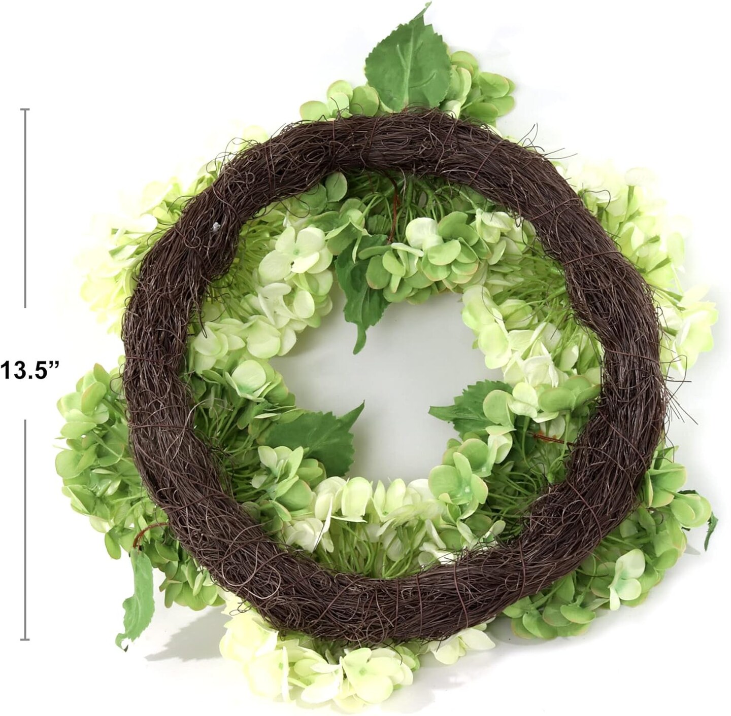 15" Mixed Green Hydrangea Wreaths - 2-Pack, Lifelike Blooms on Grapevine Ring, Perfect for Front Door, Wall & Wedding Décor - Spring & Year-Round Accent, Floral Home by Artificial Flowers
