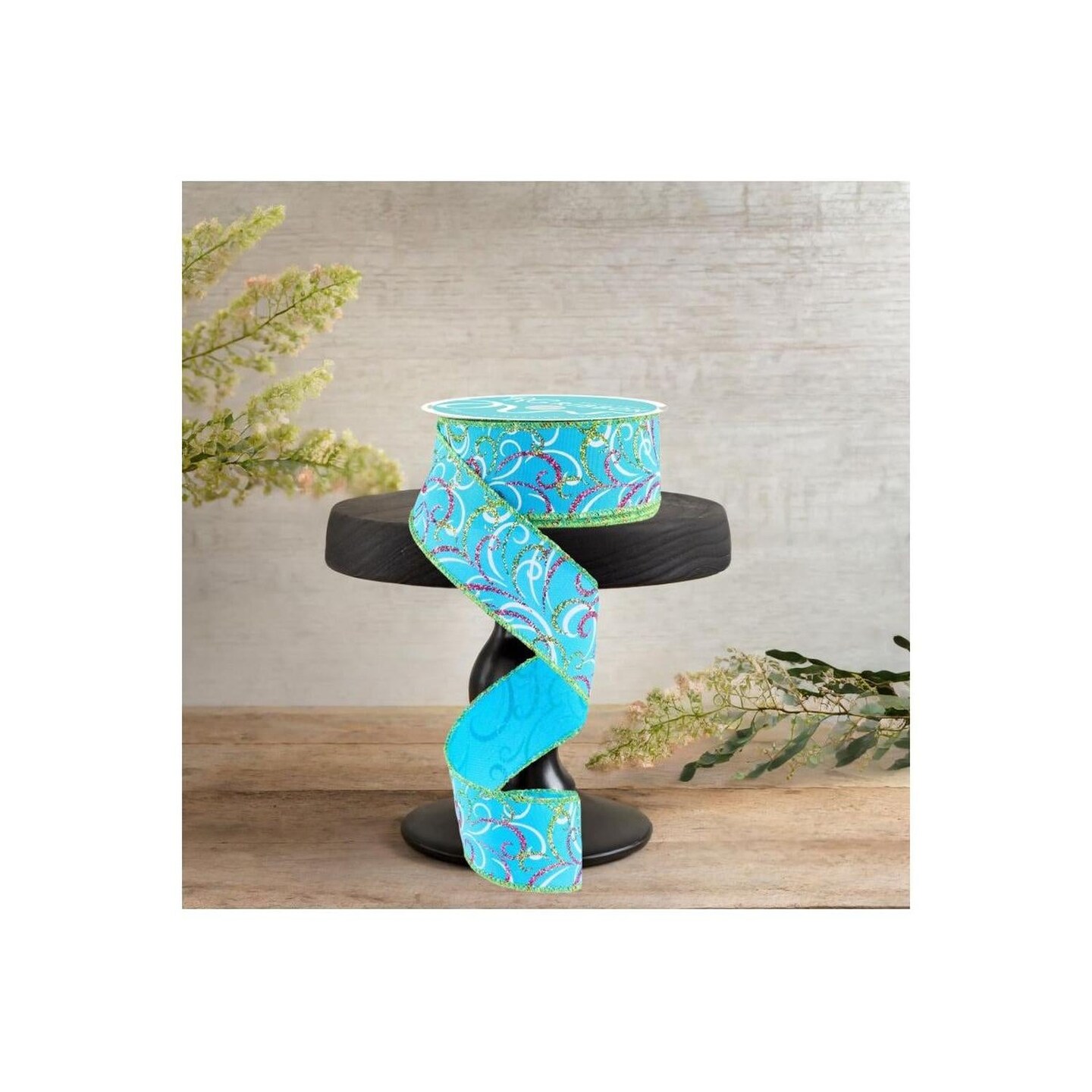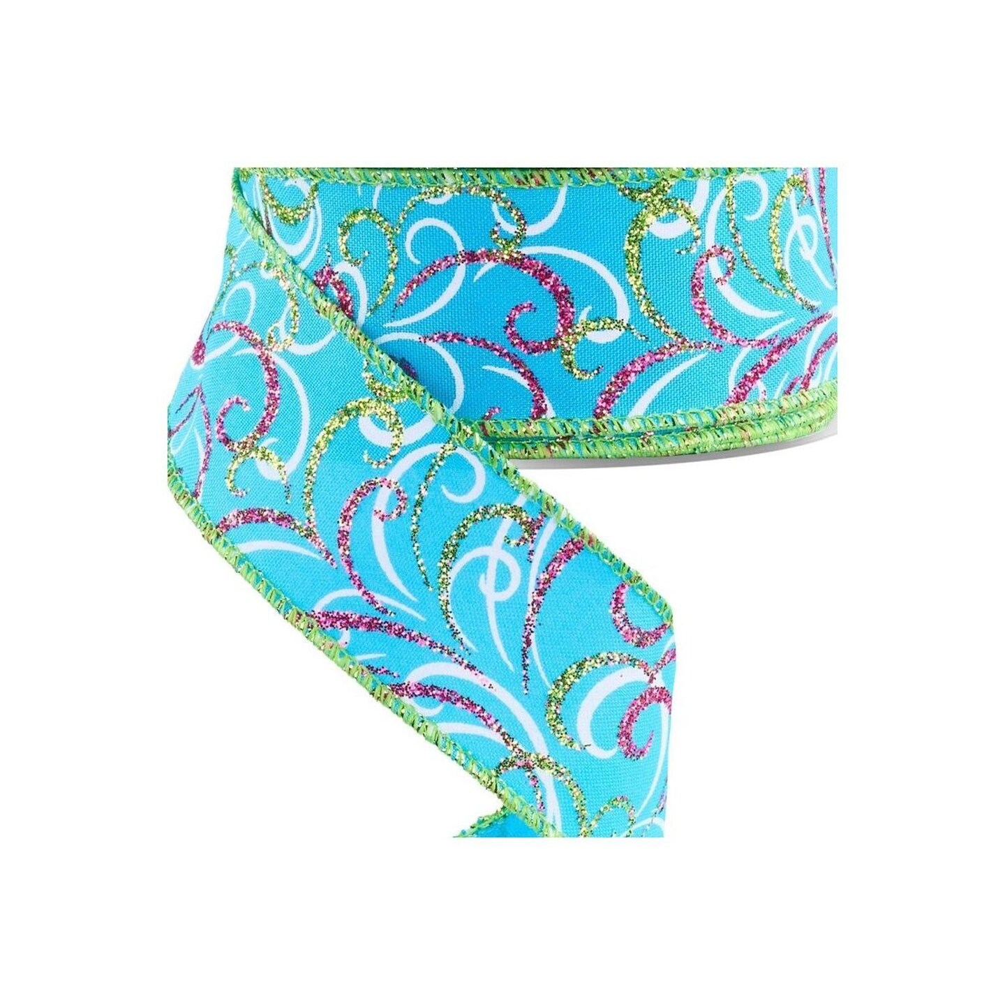 1.5" Multi Swirls Glitter Ribbon: Turquoise/Hot Pink (10 Yard)