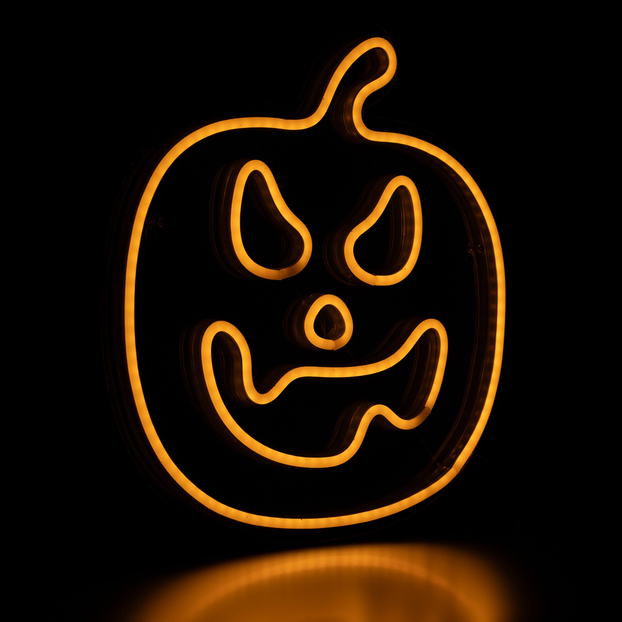 15" Orange LED Neon Style Jack-O-Lantern Halloween Window Silhouette