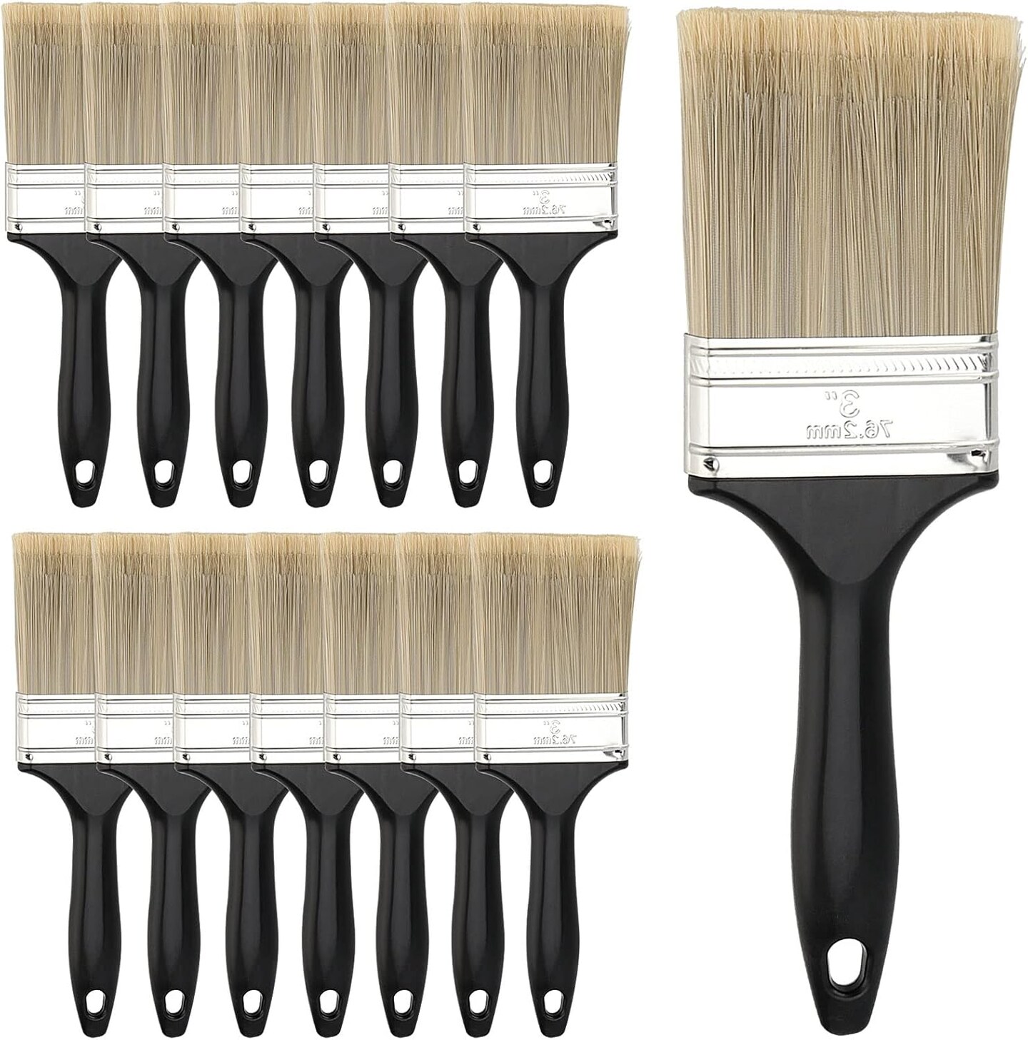 15 Pack 3 Inch Paint Brushes, Plastic Handle Paint Brushes with Polyester Bristle, Multi Purpose Paint Brushes for Acrylic Painting, Staining, Varnishing and Wall Trimming