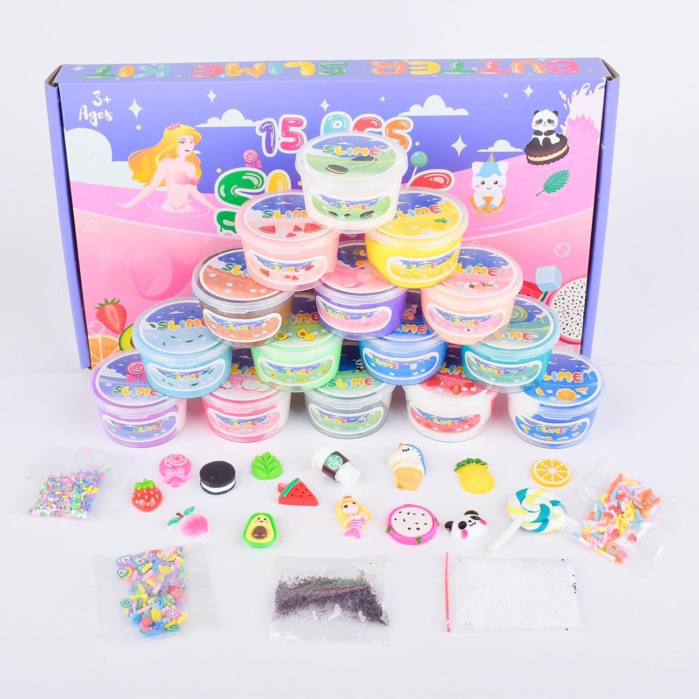 15 Pack Butter Slime Kit with Fruits Charms