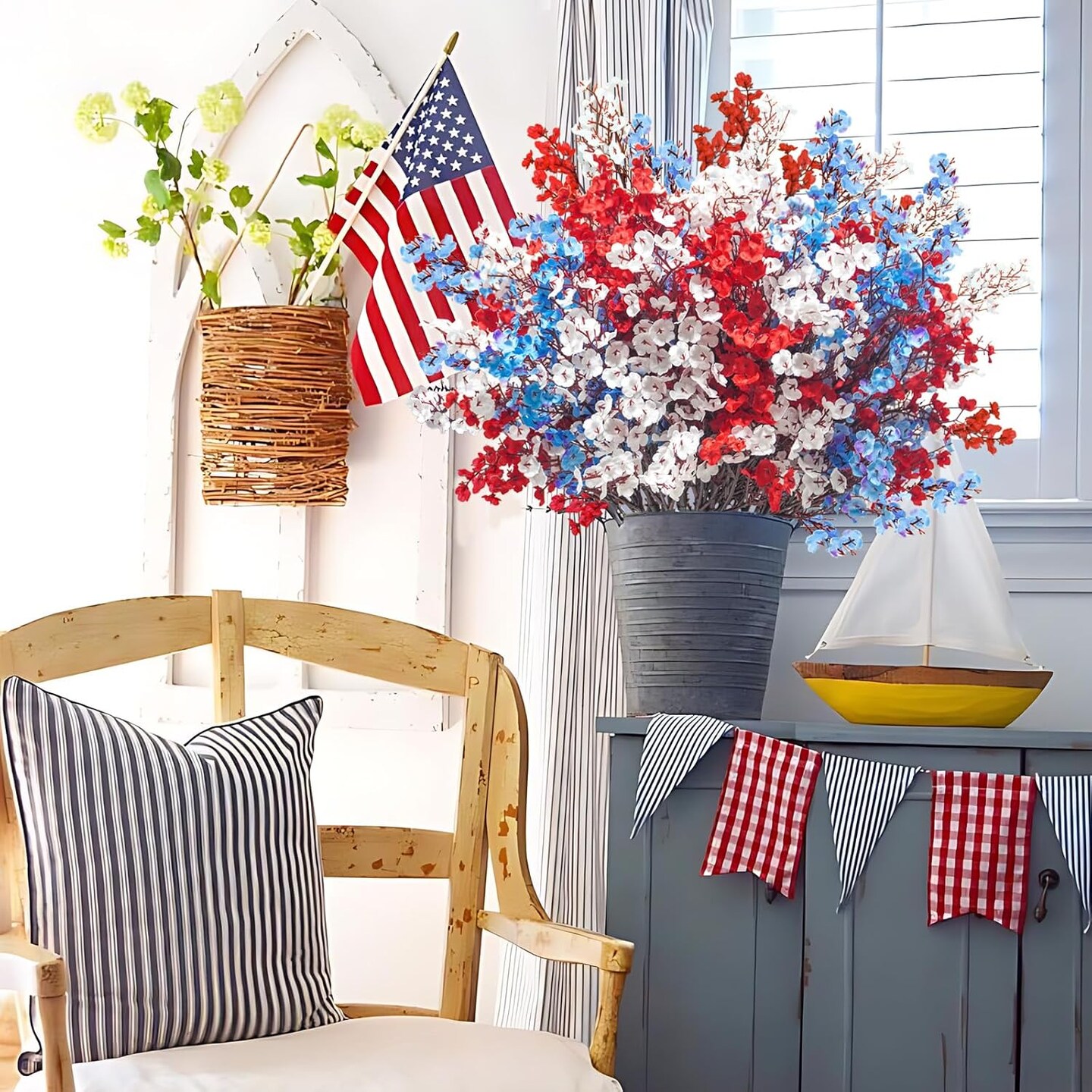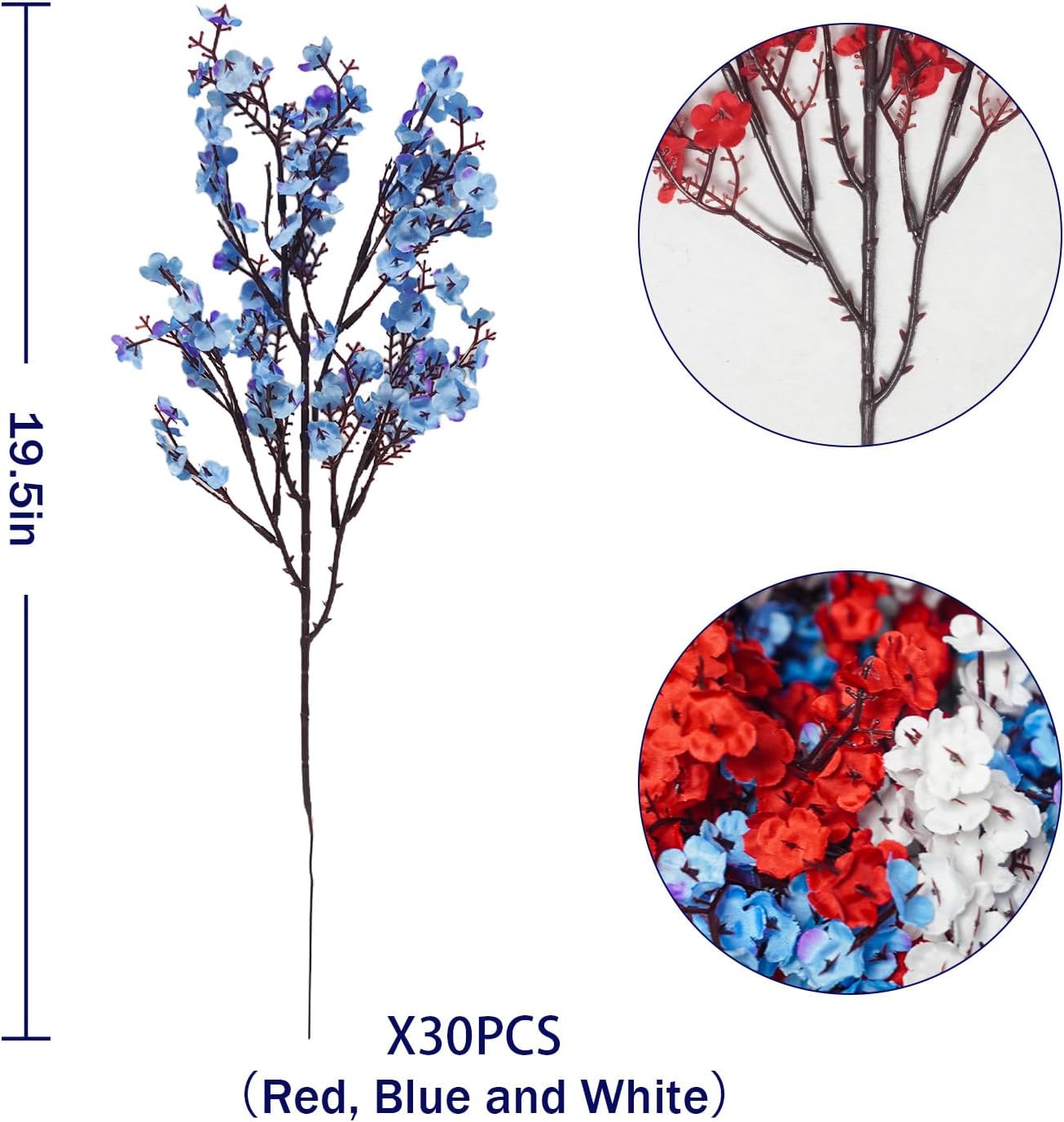 15 Pcs 4th of July Artificial Flowers Fake Patriotic Babys Breath Flowers for Independence Day Decor Blue White Red Silk Flowers for Memorial Day Floral Arrangement Home Wedding