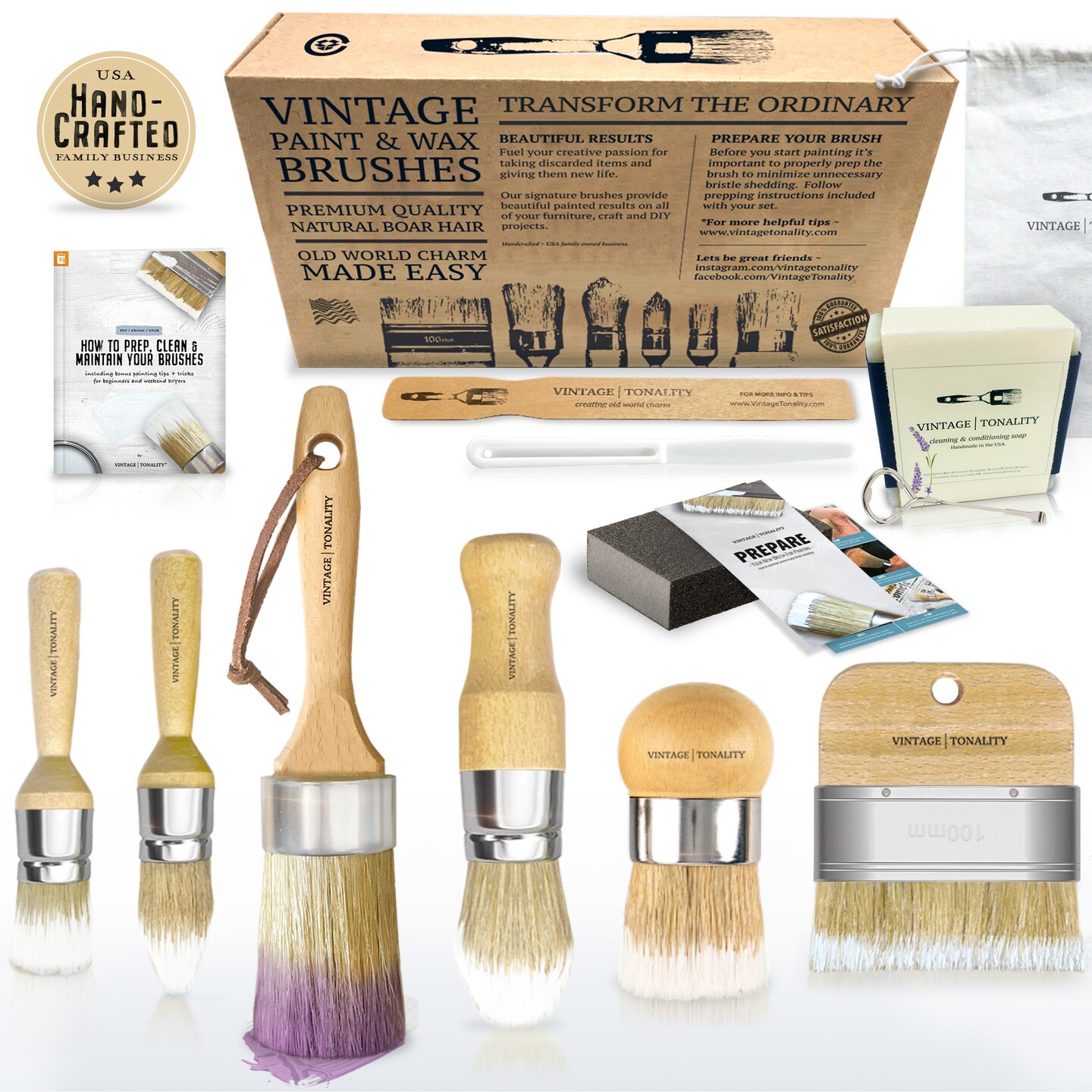 15 PCS Chalk Paint Brush Set, Chalk Paint Brush for Furniture Painting or Waxing, Includes 6 Brushes + 9 Tools, Large and Small DIY Painting Projects, Vintage Tonality