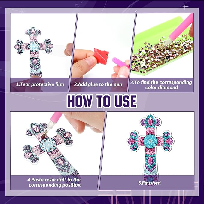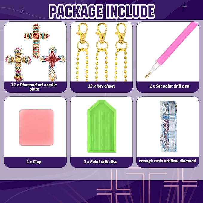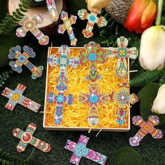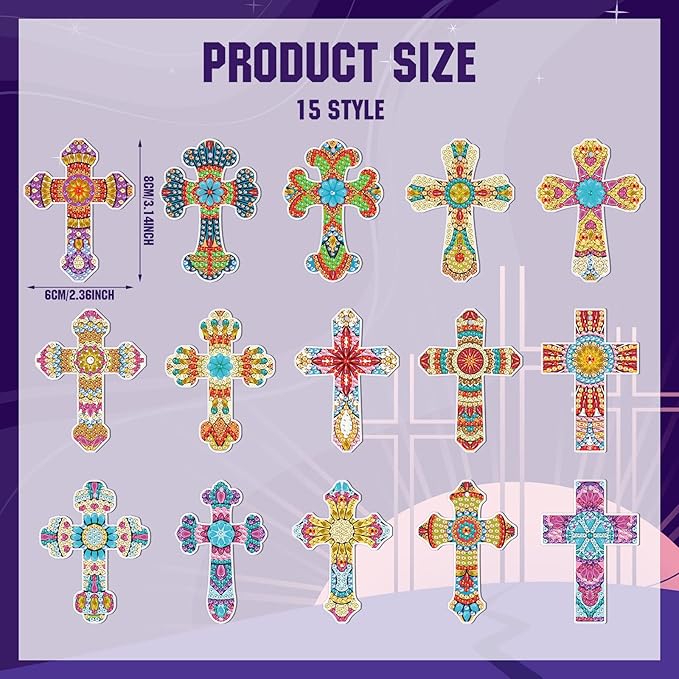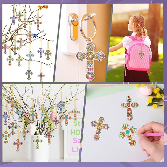 15 Pcs Easter Cross Diamond Painting Keychains, Christian Jesus Diamond Art Keychain Religious Painting Key Chains DIY Art Ornaments Key Rings for Vacation Bible School Adults Kids Decor