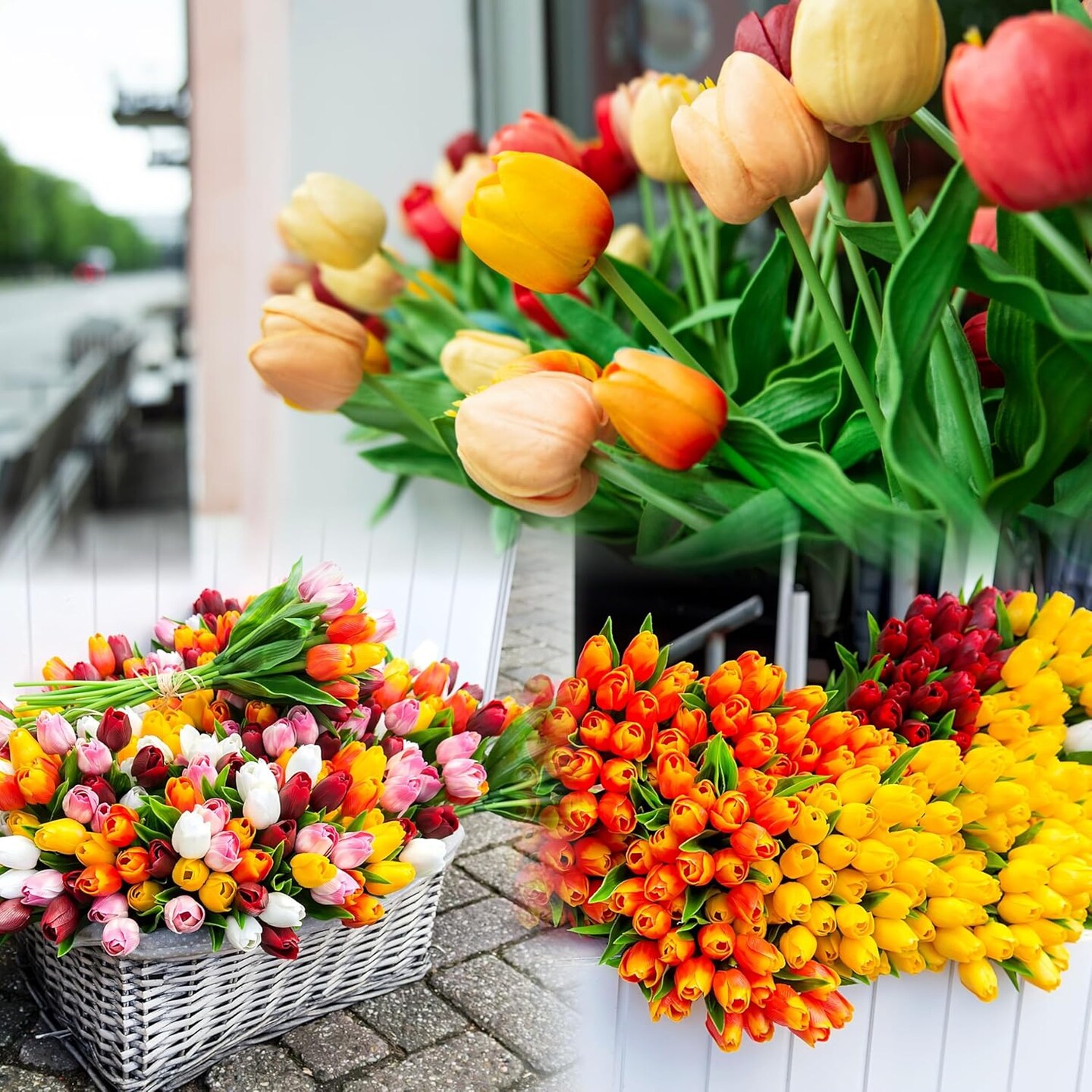 15 Pcs Real Touch Artificial Tulips – PU Faux Flowers for Home, Wedding & Party Decorations (Multi-Color)