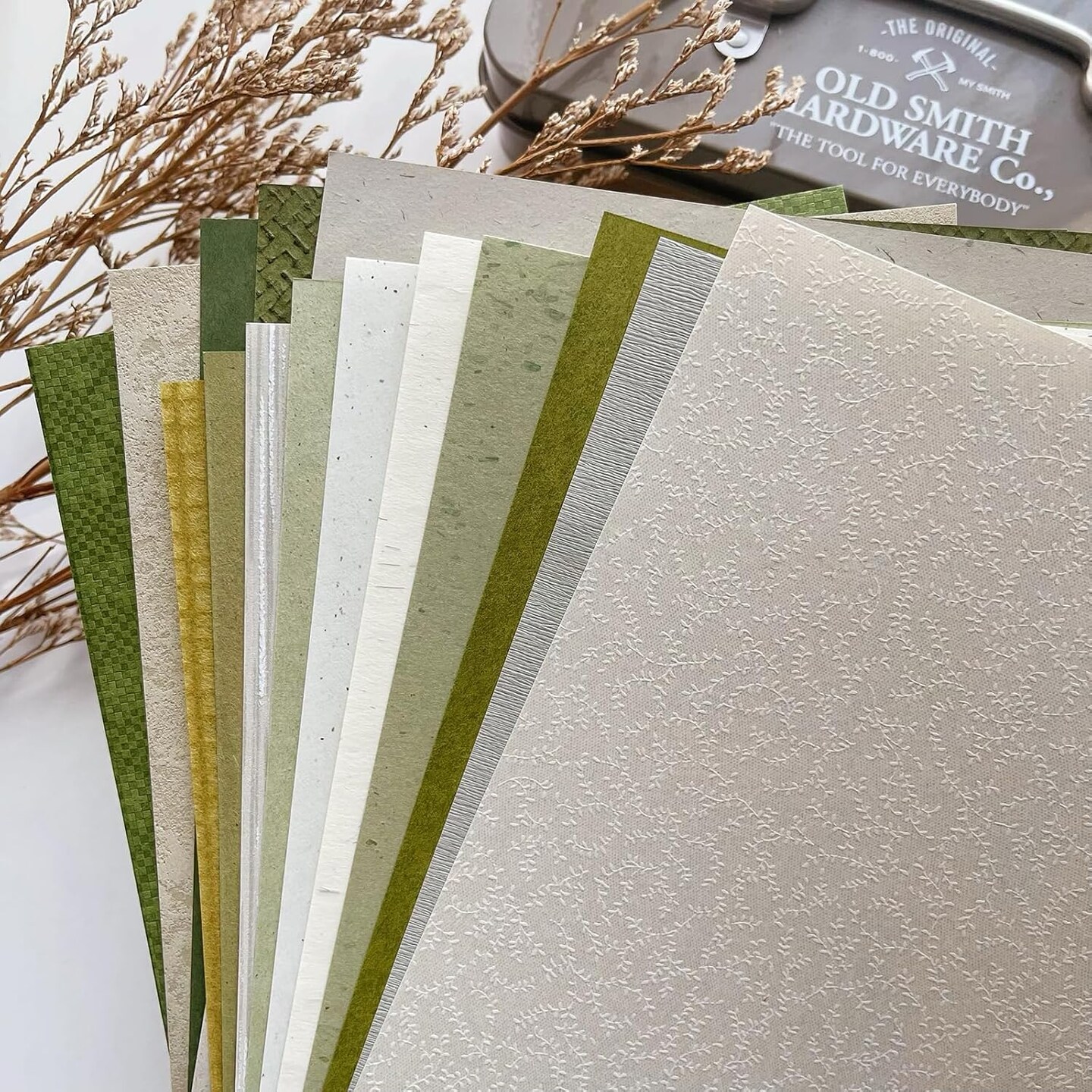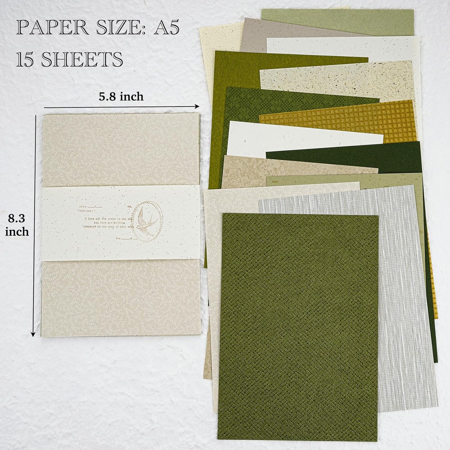 15 Sheets Textured Scrapbook Paper Assorted Set,5.8x8.3 Inch A5 (Forest Green)