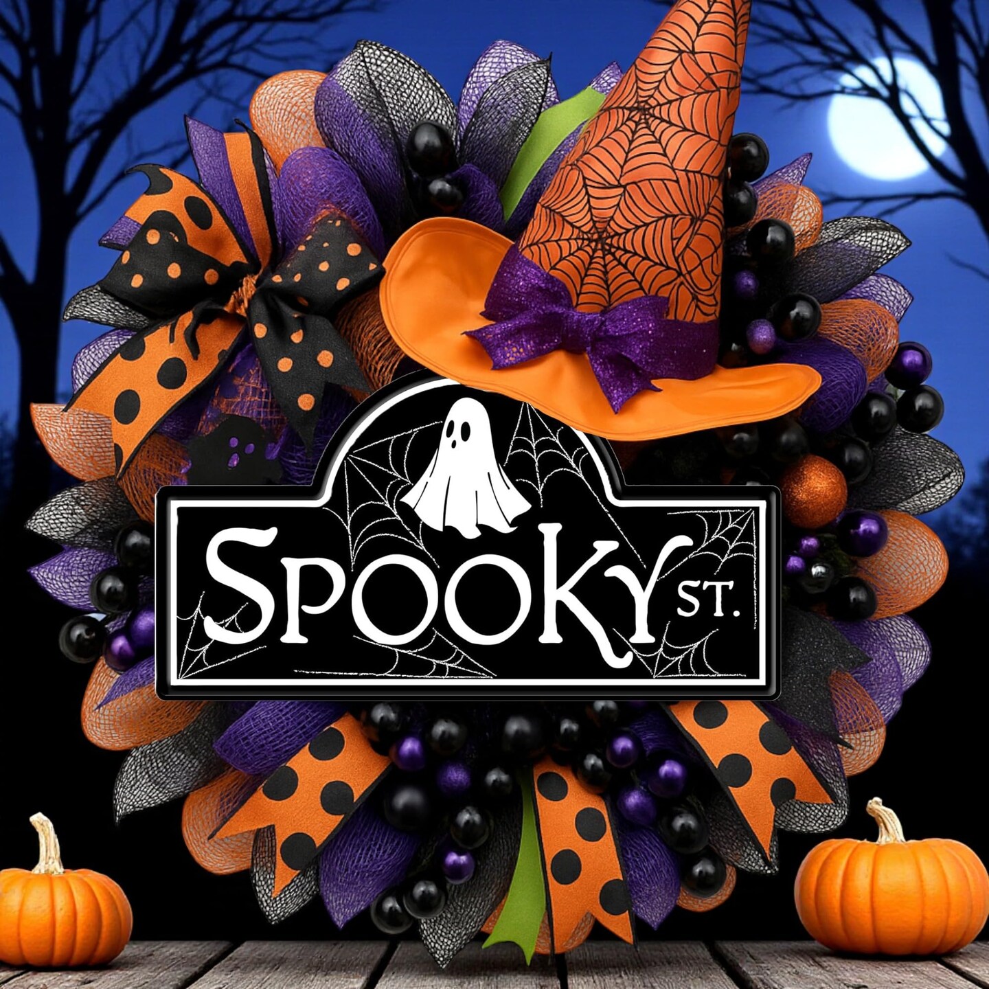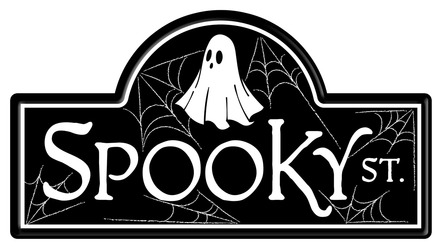 15" Spooky Street Metal Halloween Sign with Ghosts and Spiders For Wreath Accents, Crafts, and Decorations