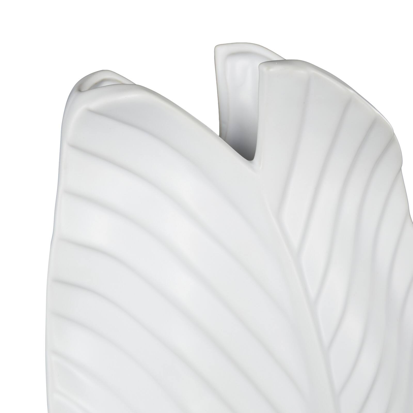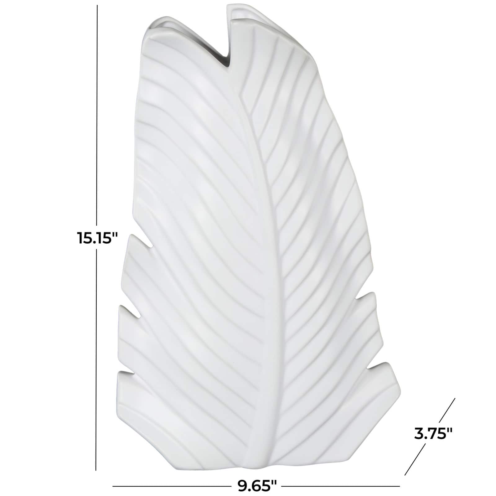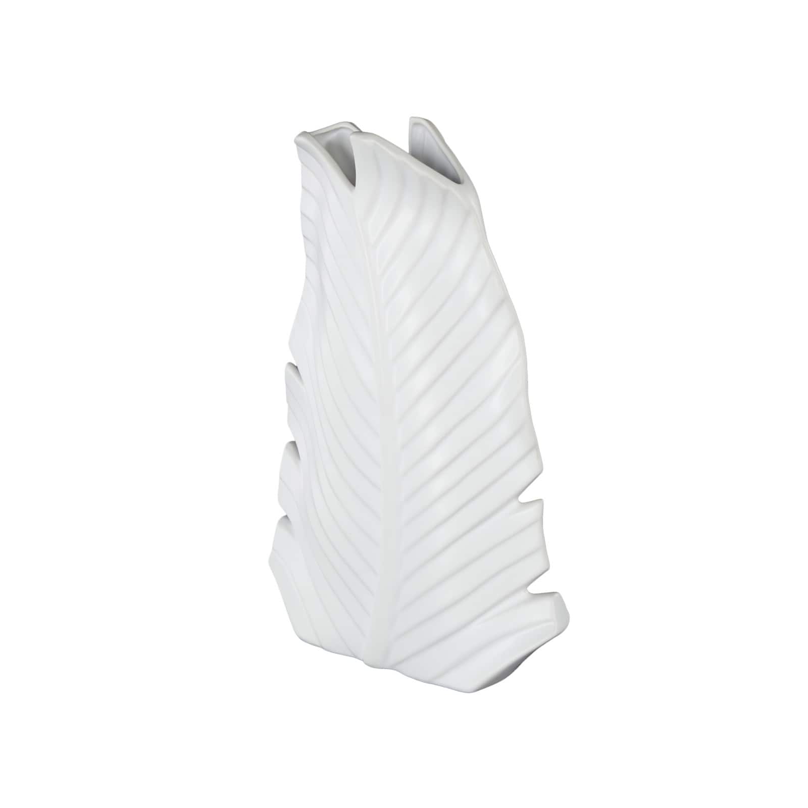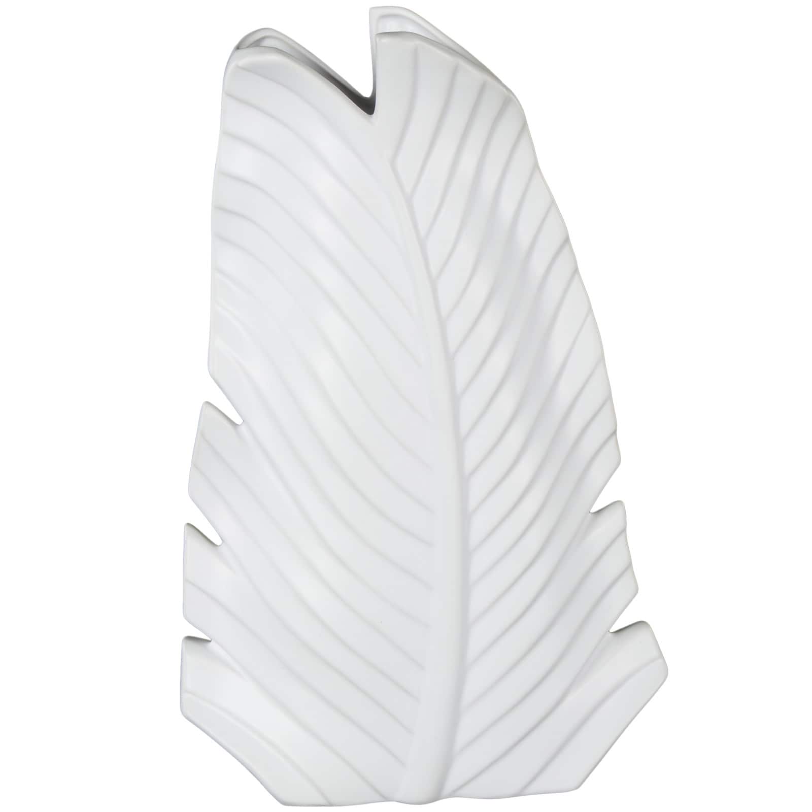 15" White Ceramic Palm Leaf Vase