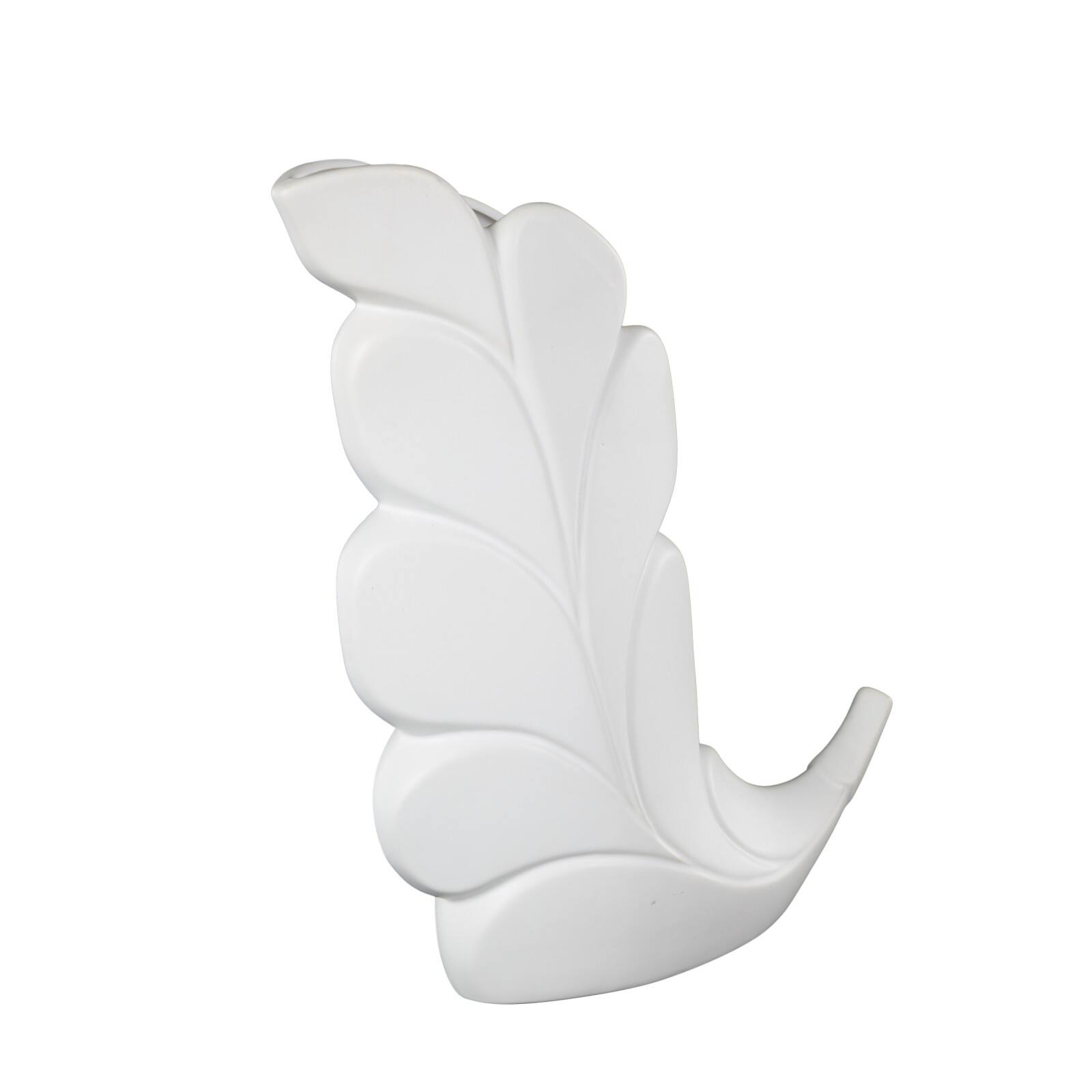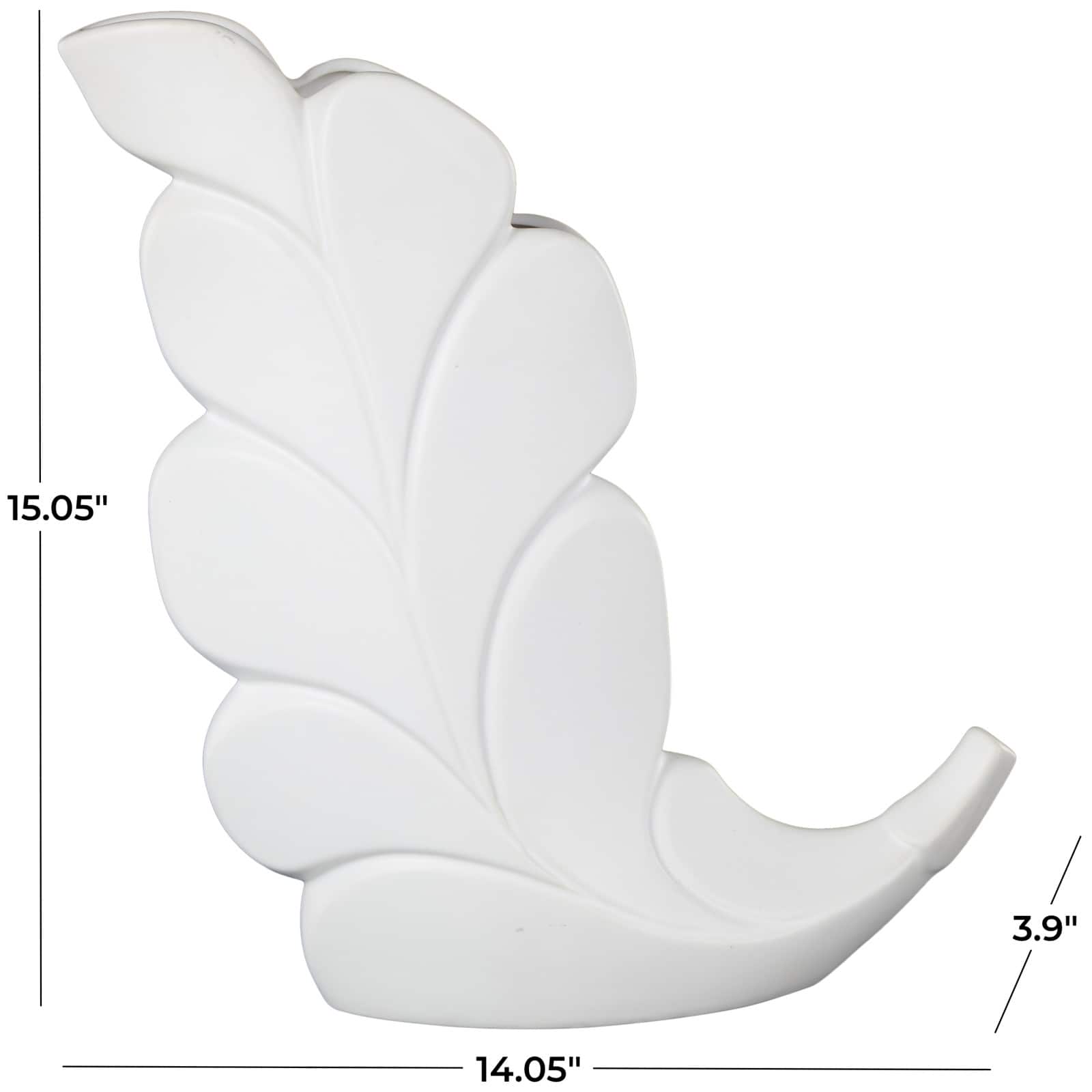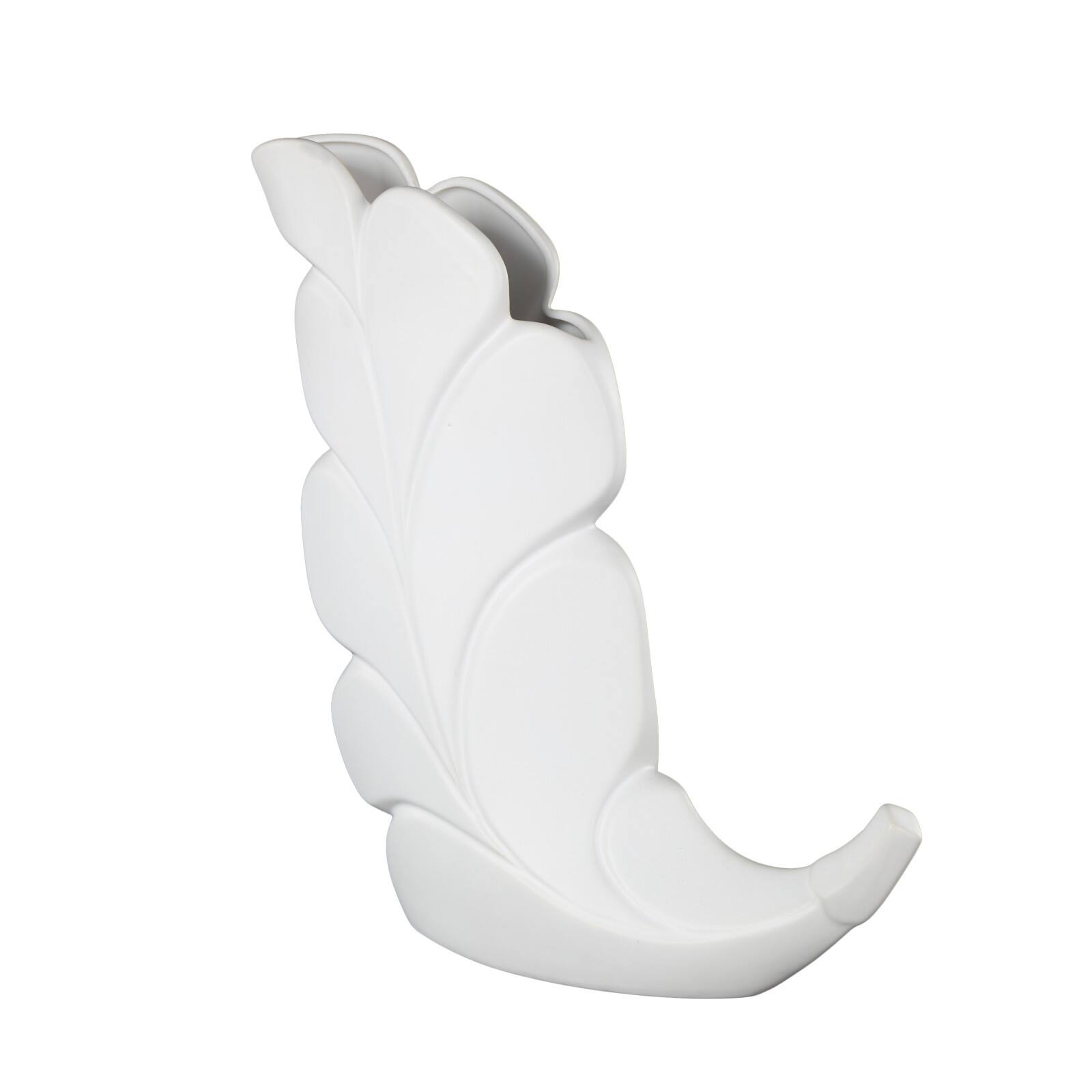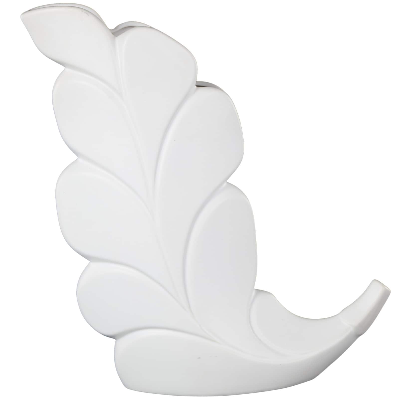 15" White Leaf Ceramic Slanted Decorative Vase