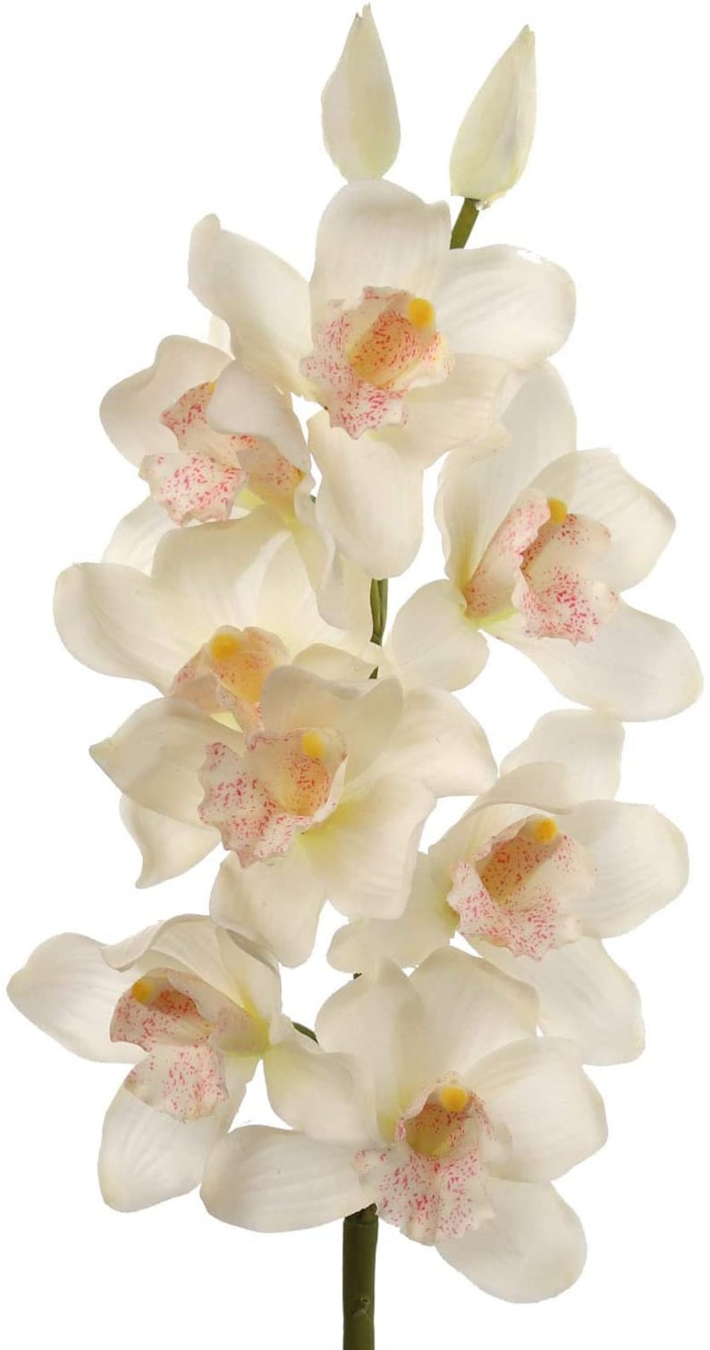 15" White Silk Cymbidium Orchid Stem - Elegant & Lifelike Floral Decor for Any Space