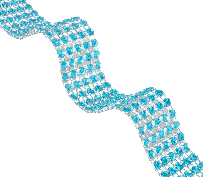 1.5" x 10 Yards Turquoise Diamond Mesh Ribbon 5 Rolls of Rhinestone Bling Ribbon