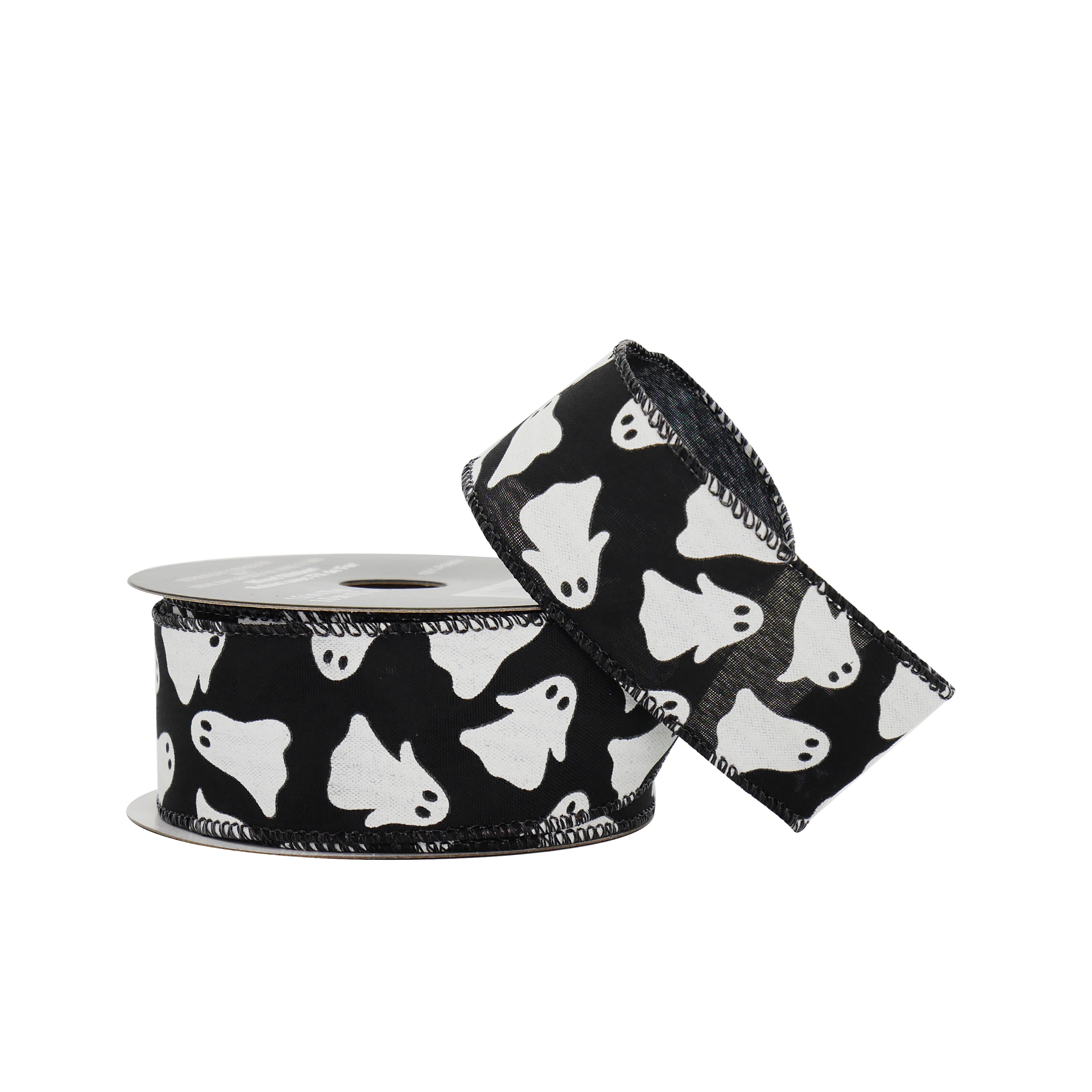 1.5" x 10yd. Black & White Ghost Wired Taffeta Ribbon by Celebrate It® Halloween