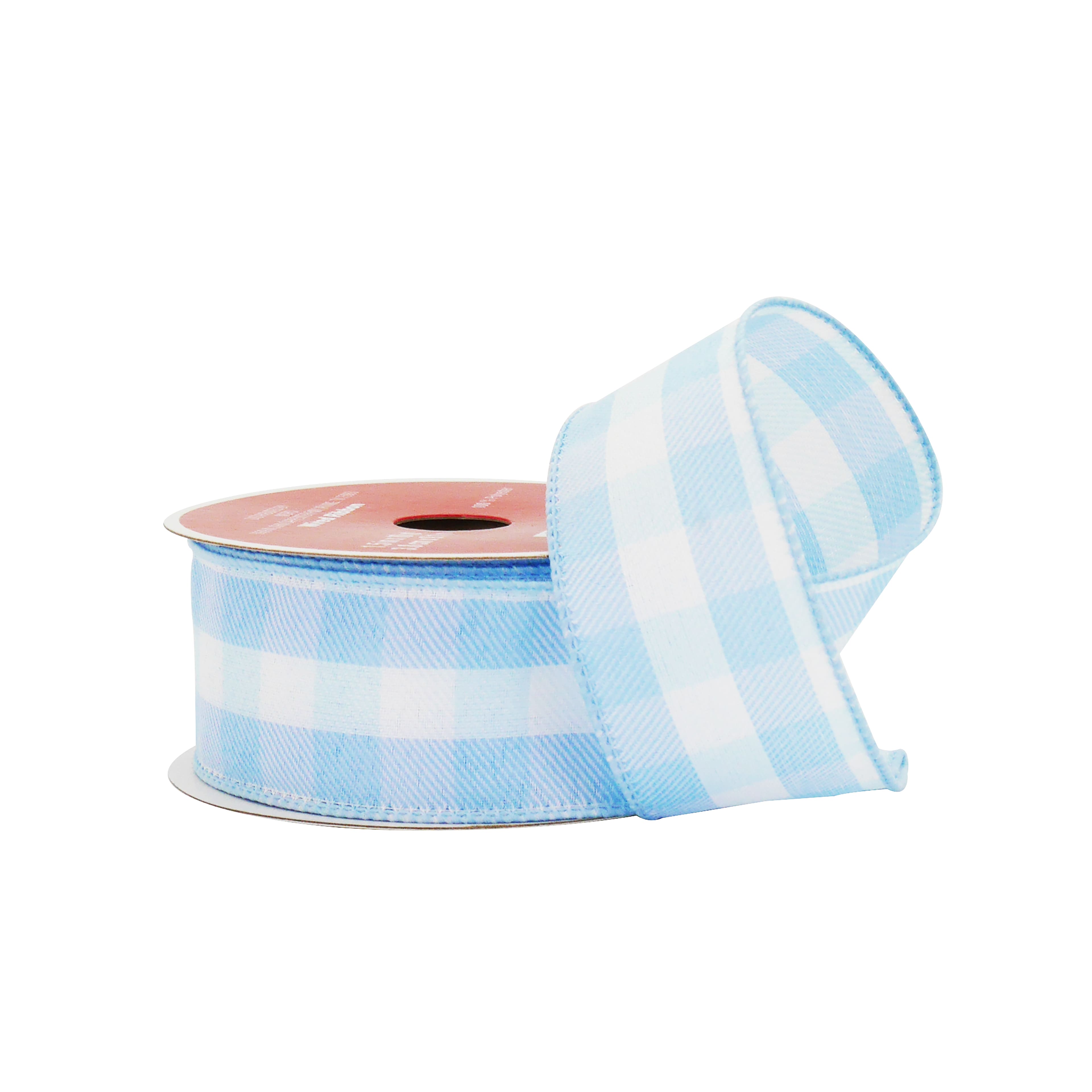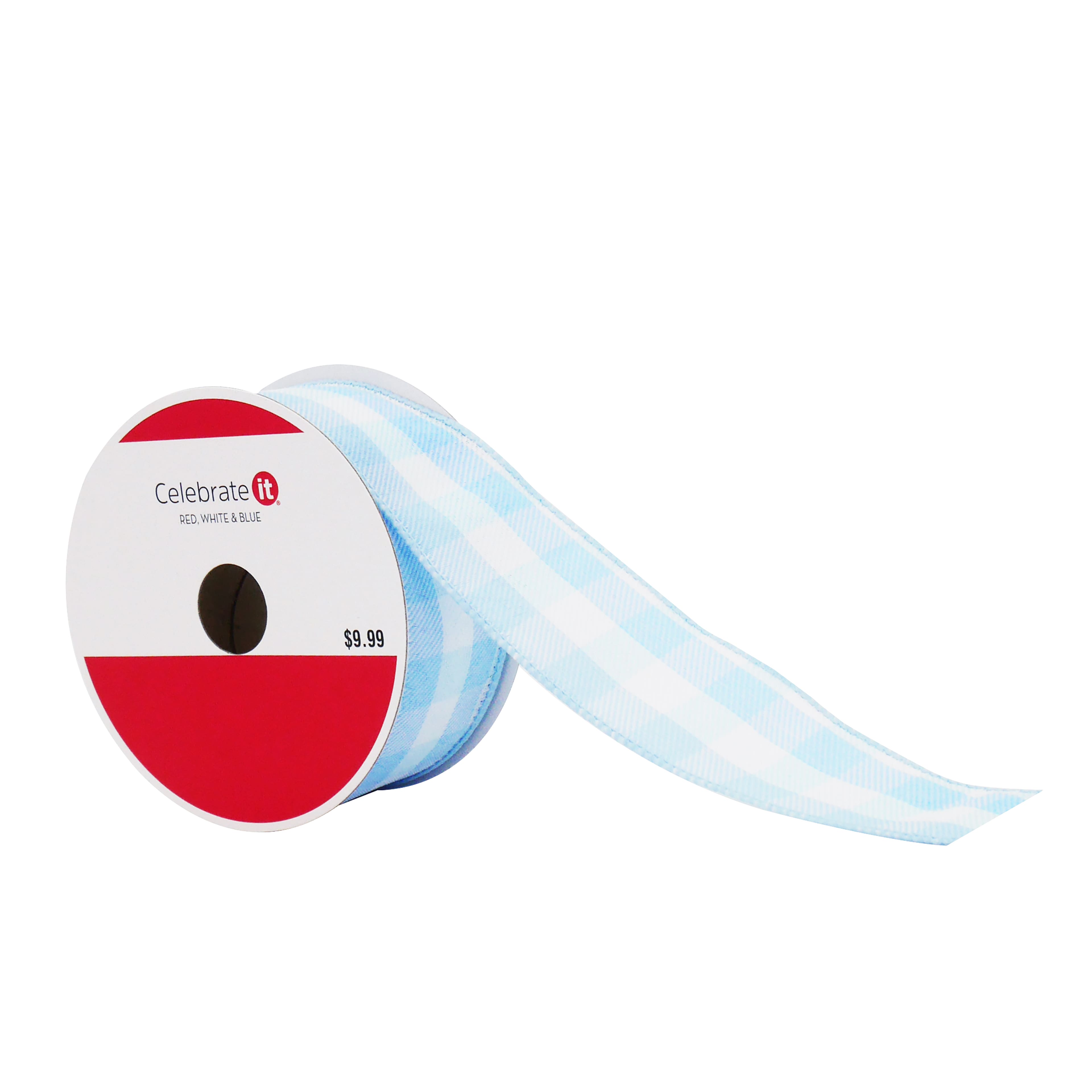 1.5" x 10yd. Blue & White Check Wired Ribbon by Celebrate It®