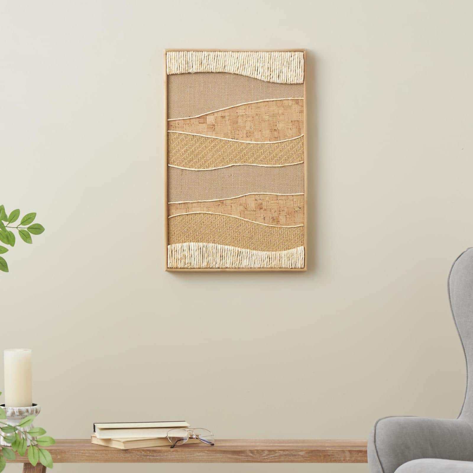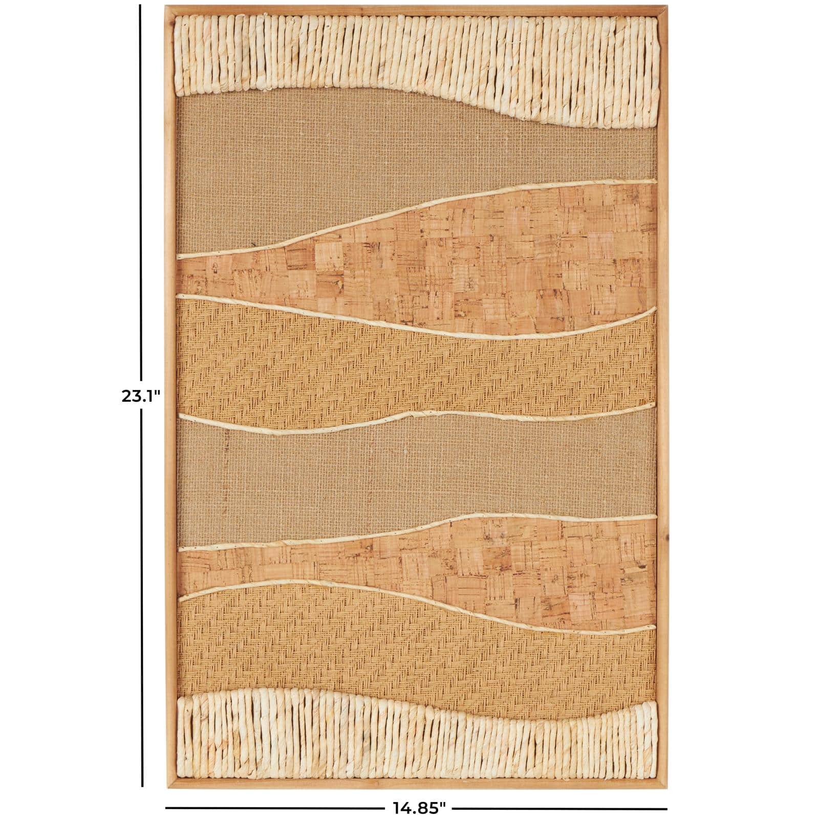 15" x 23" Handmade Brown Wood Wall Décor with Dimensional Wavy Mixed Media Design