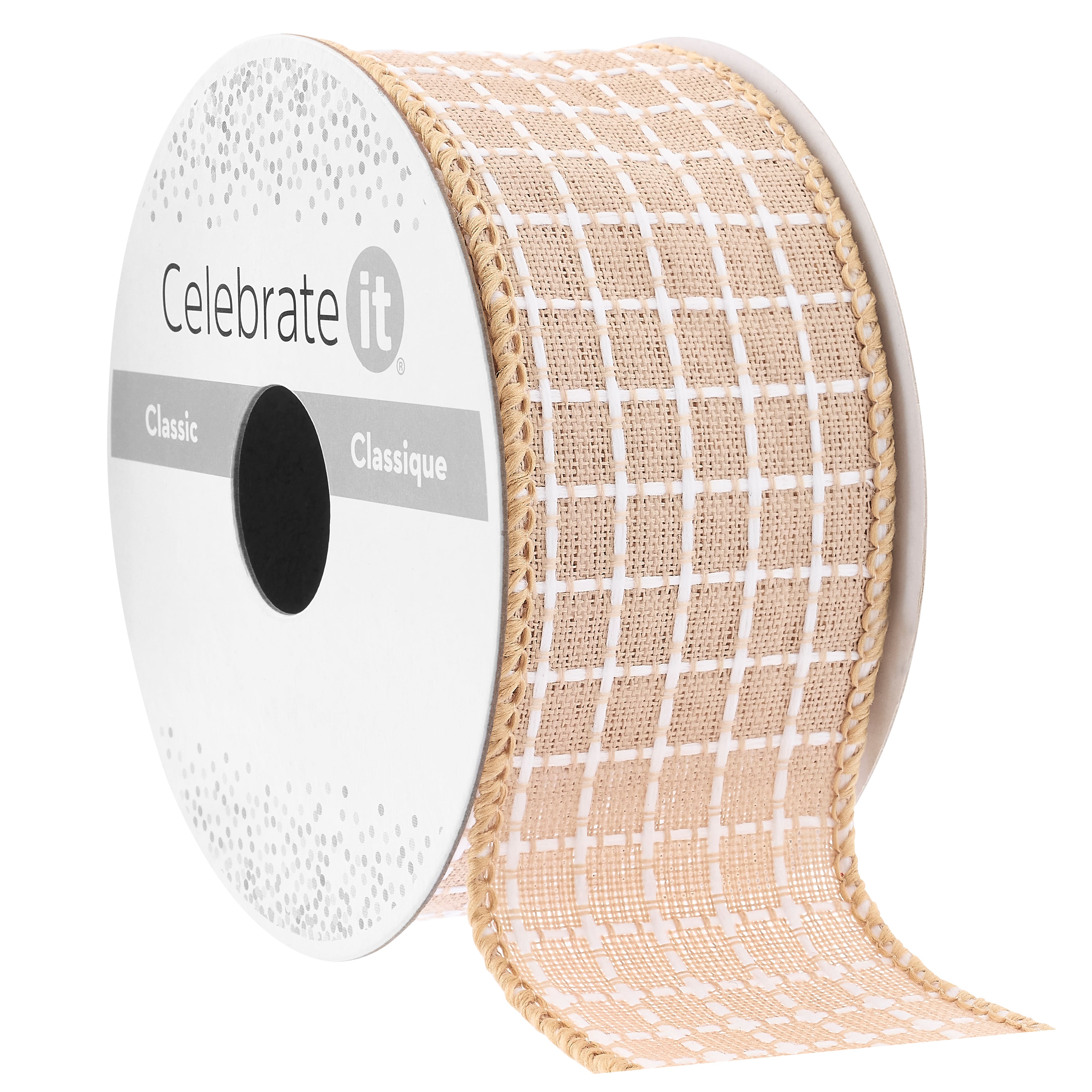 1.5" x 3yd. Faux Linen Wired Grid Ribbon by Celebrate It™ Classic