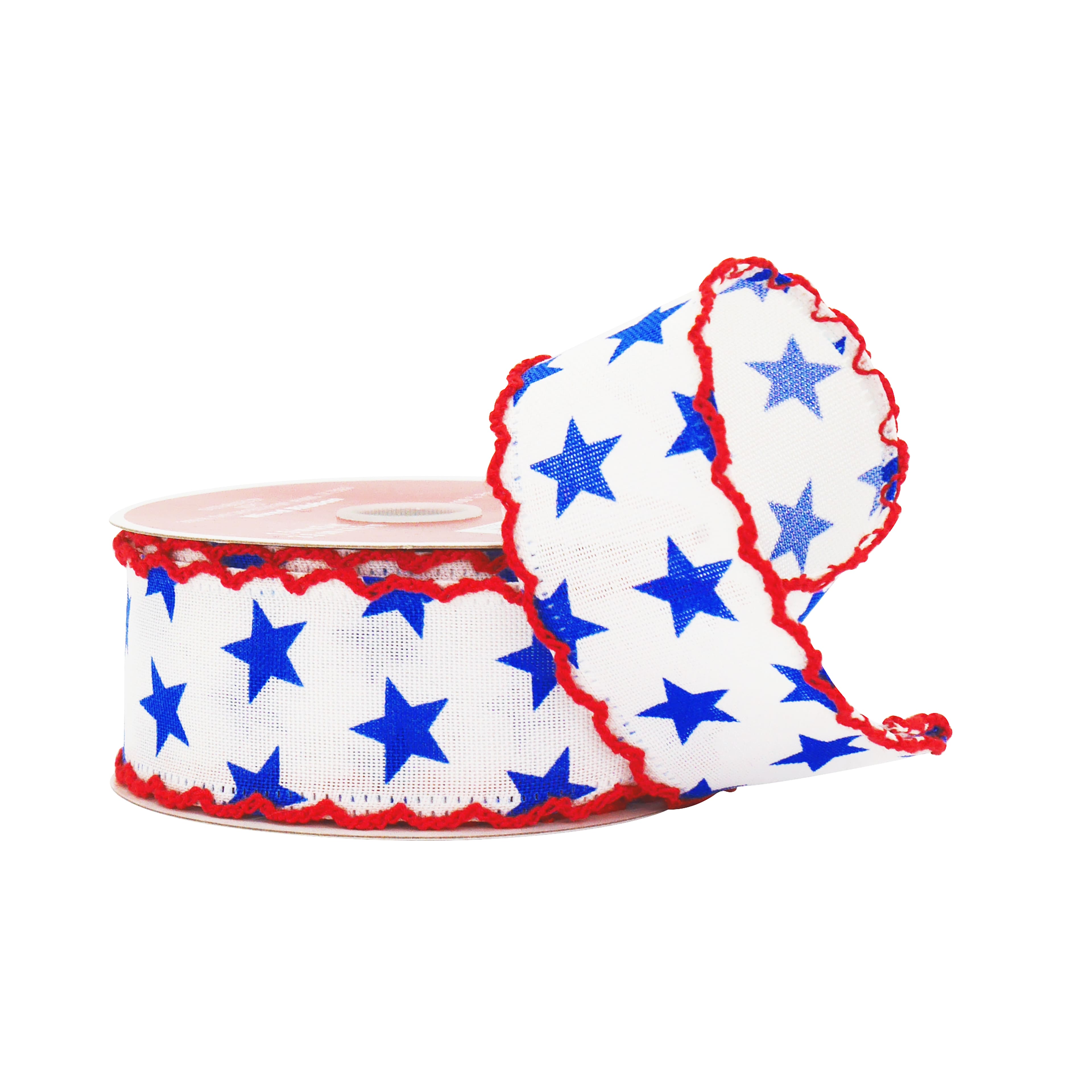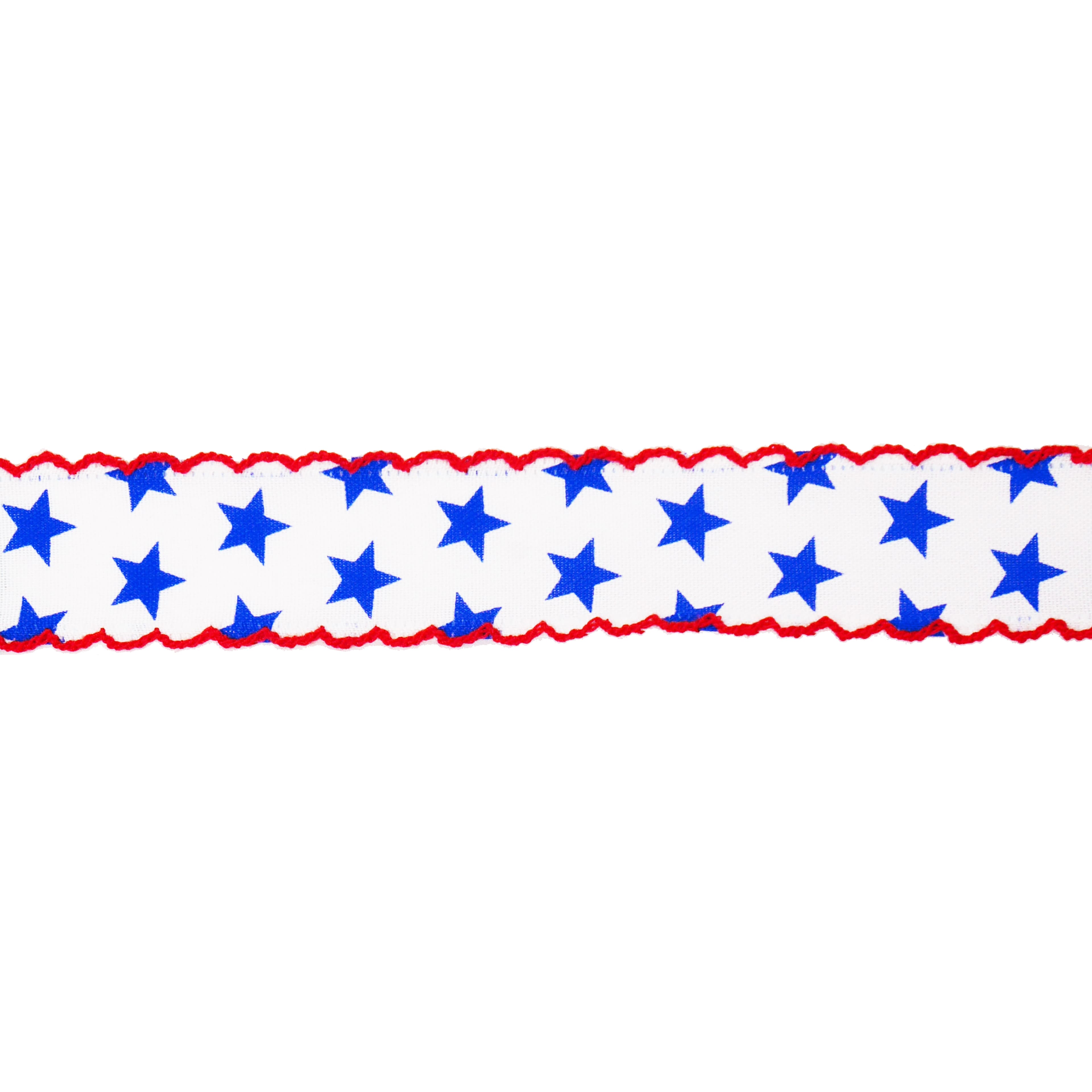 1.5" x 5yd. Blue & White Stars with Red Edge Wired Cross Linen Ribbon by Celebrate It®