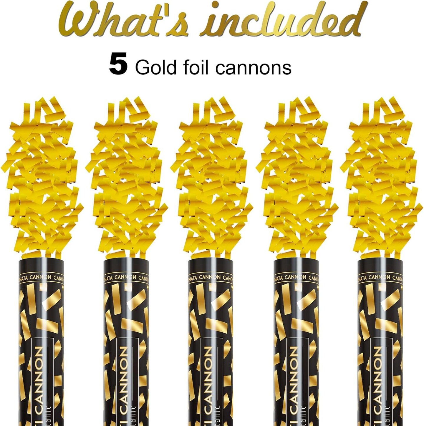 15" Yellow & Gold Confetti Cannons – Air-Powered Party Poppers for Celebrations