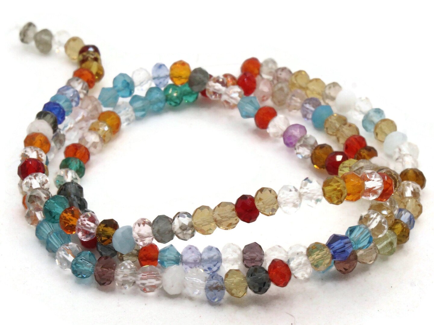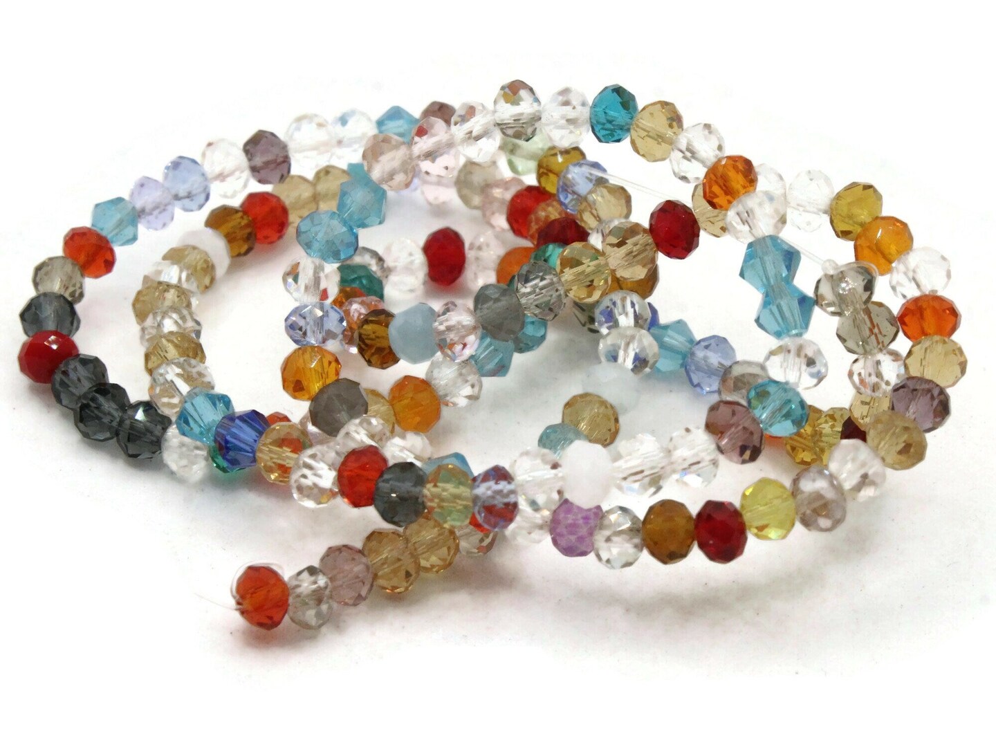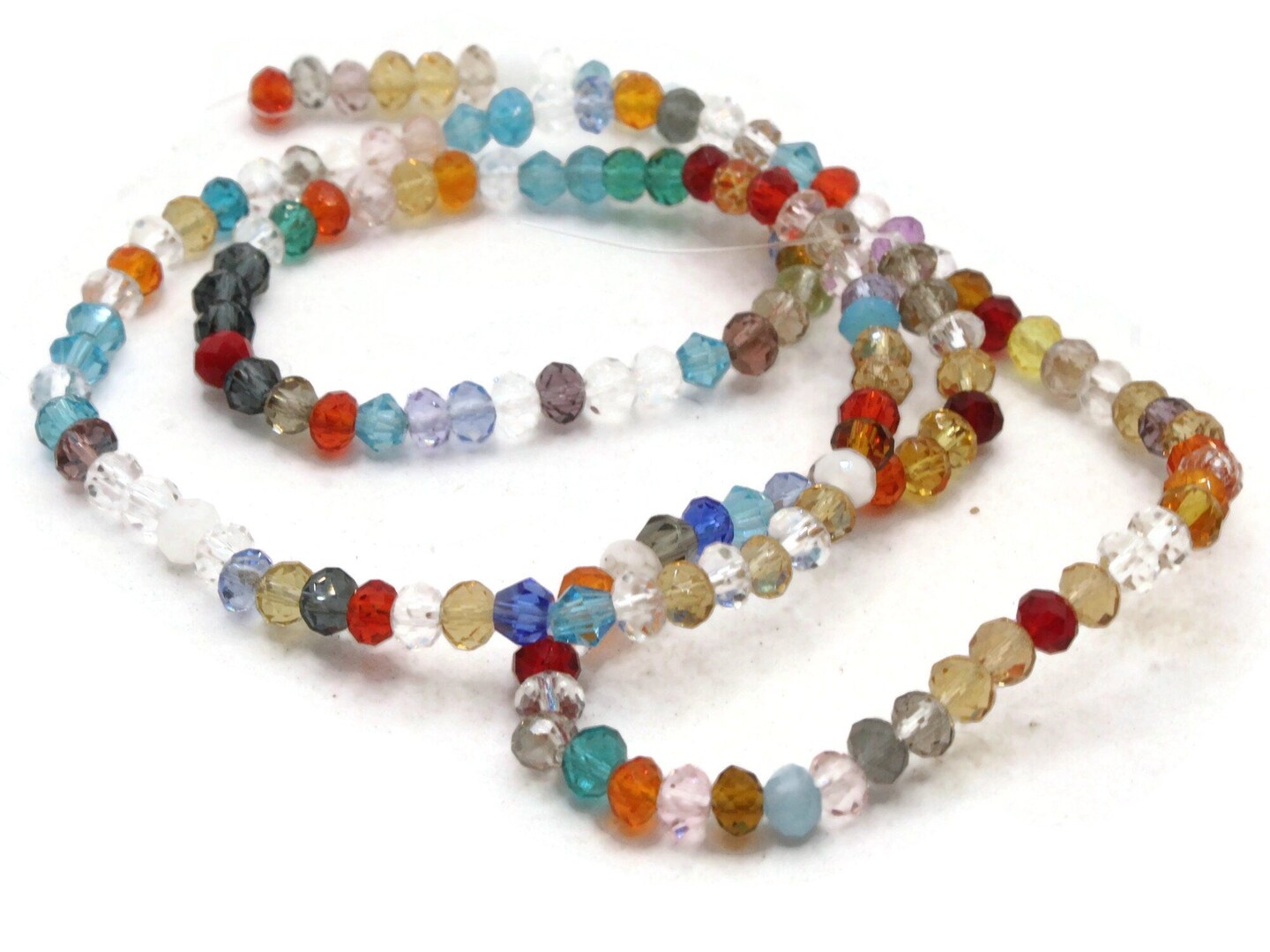 150 4mm x 3mm Mixed Color Glass Faceted Rondelle Beads