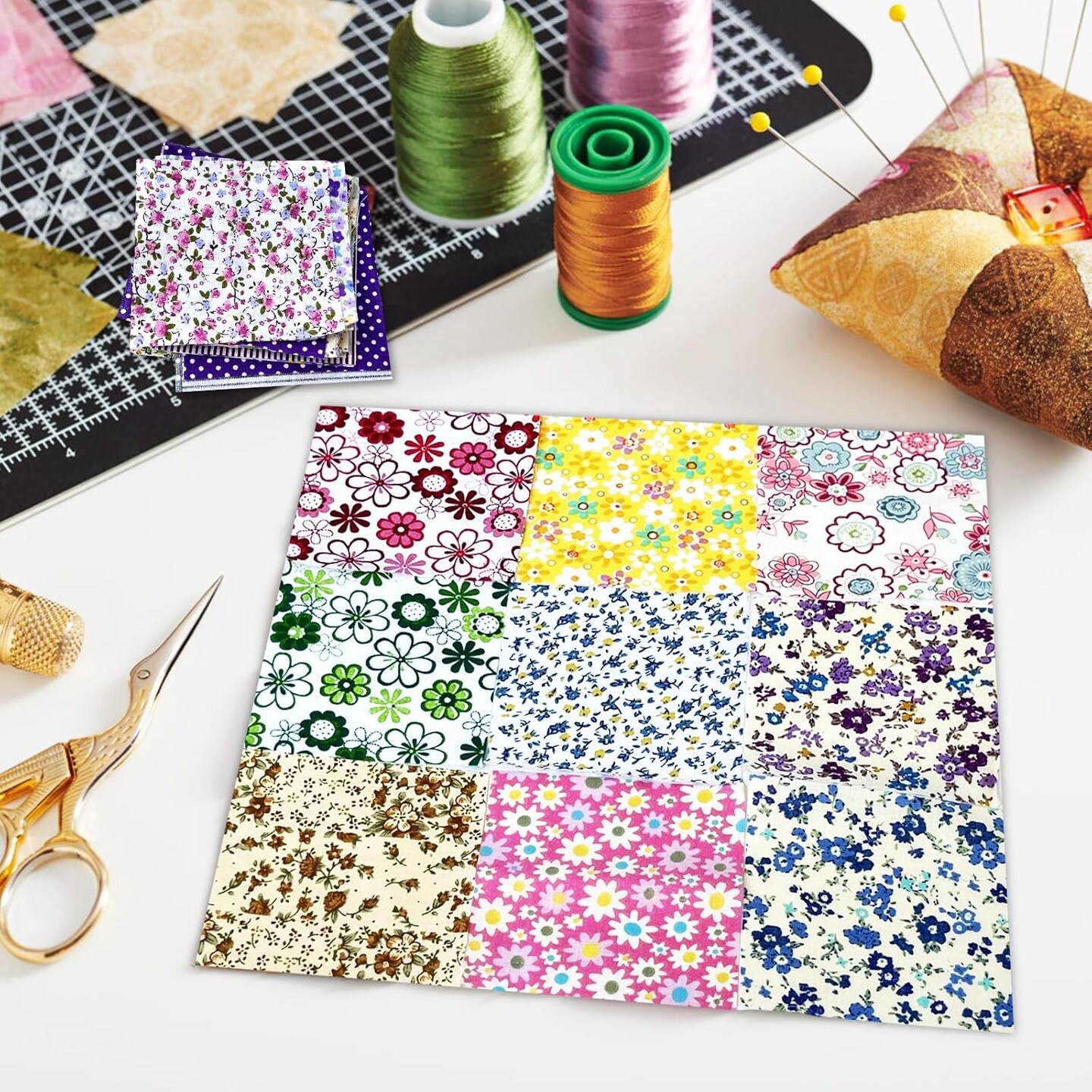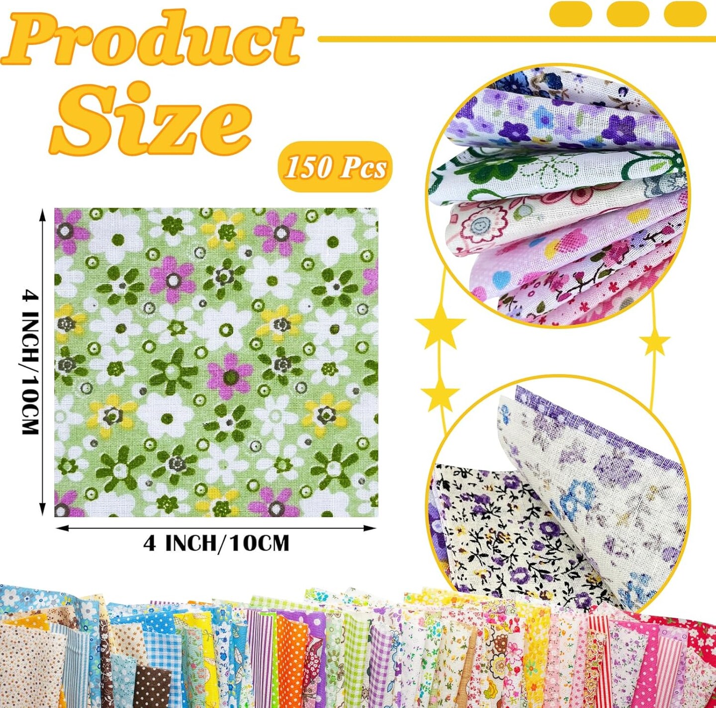 150 Pcs 4 x 4 Inch Cotton Craft Pre-Cut Fabric Bundle Squares