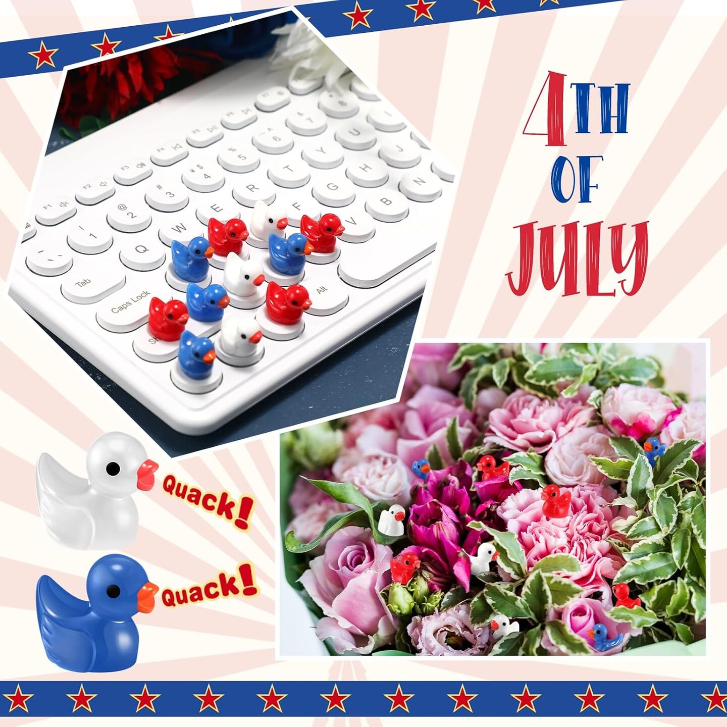 150 Pcs 4th of July Tiny Ducks Patriotic Mini Resin Duck Figures Bulk for Independence Day Party Toys