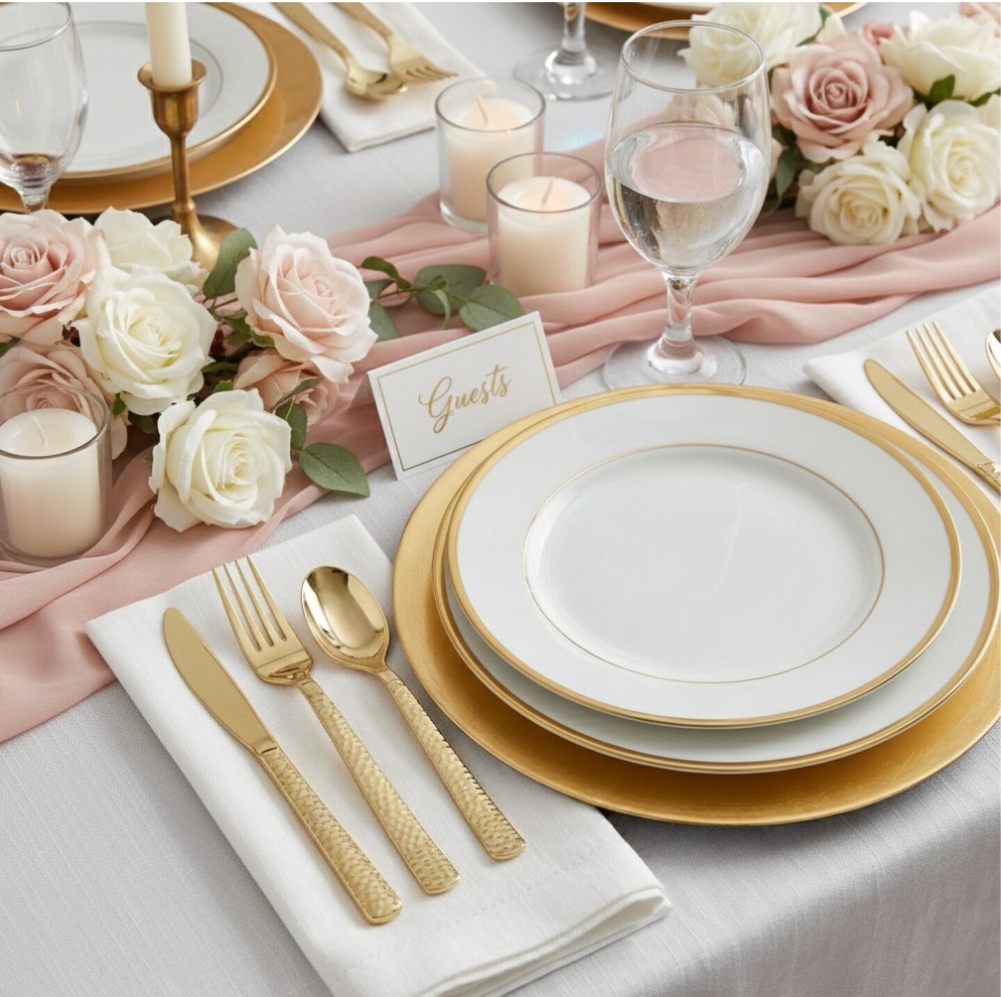 150 Piece Gold Hammered Finish Plastic Cutlery Utensil Set - Metallic Plastic Silverware Set (50 Sets)