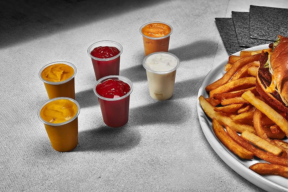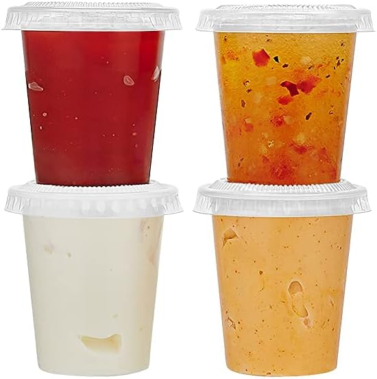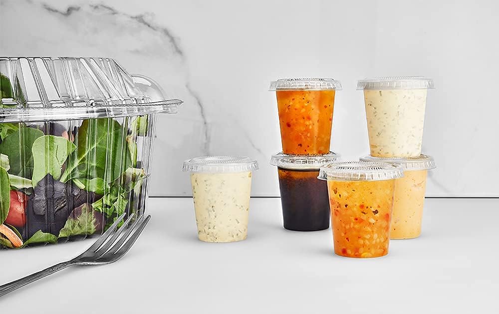150 Sets - 2oz, Disposable Mini Plastic Shot Cups With Lids Perfect For Portion Souffle, Condiment, Dipping Sauce, Salad Dressing