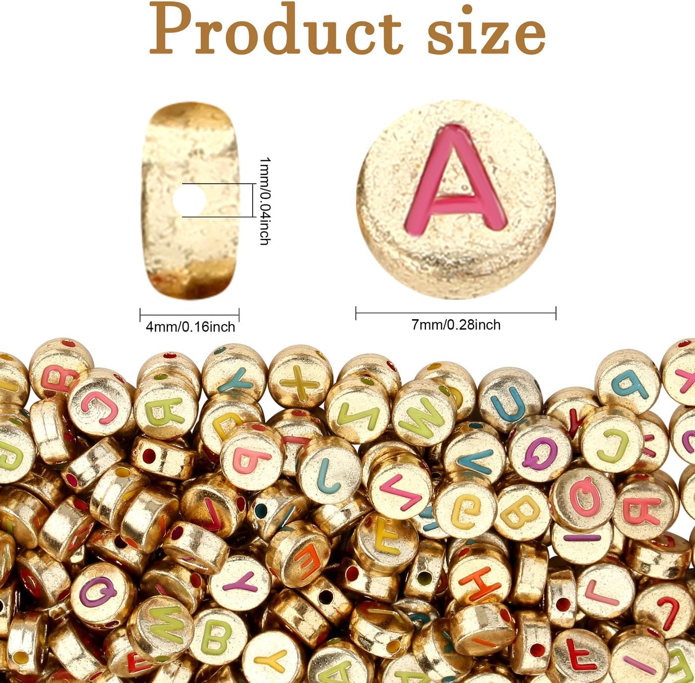 1500 PCS Gold Round Letter Beads (4×7mm) – Colorful A–Z Acrylic Beads for Bracelets & Jewelry Making