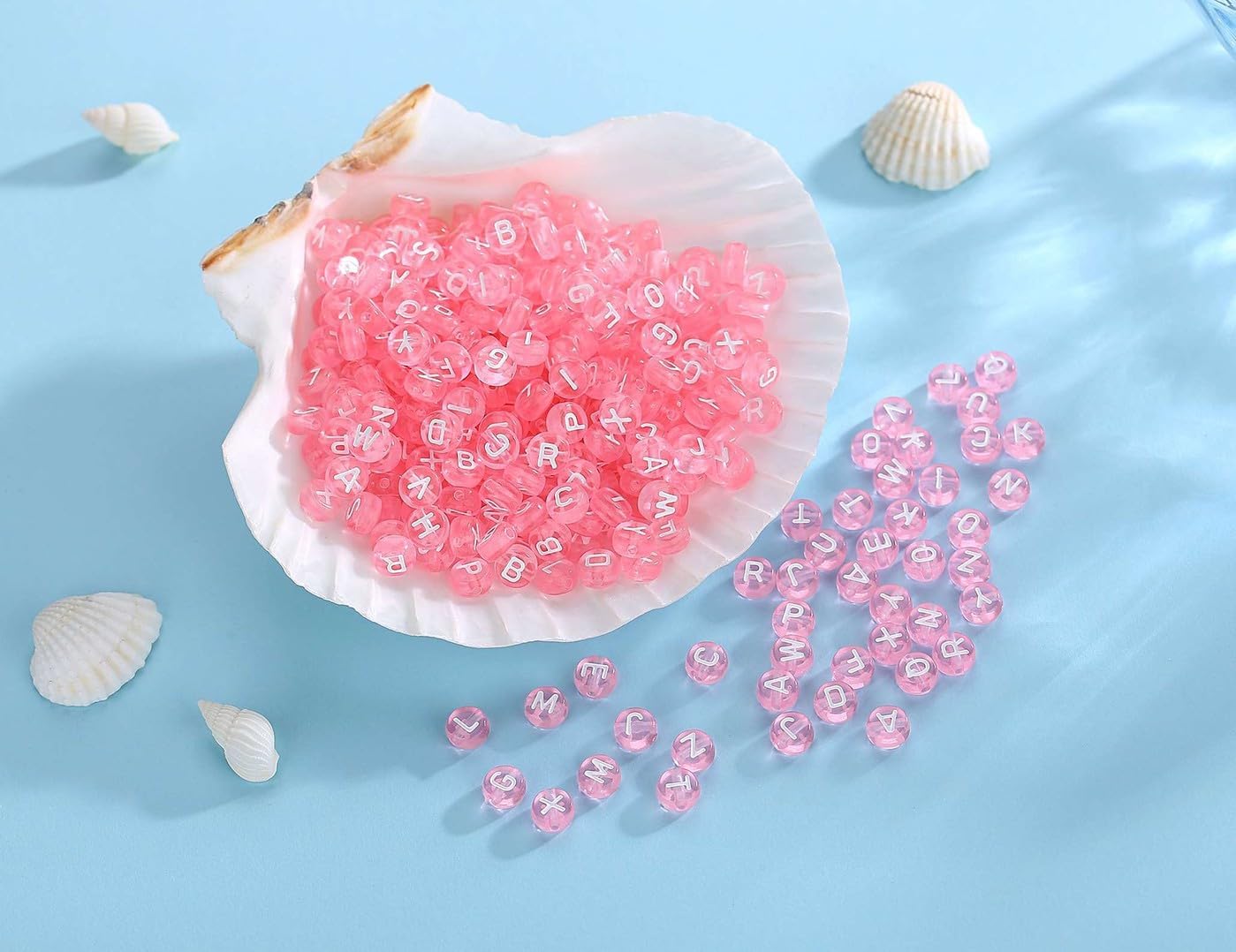 1500PCS Acrylic Letter Beads Alphabet White Letters Pink Transparent Round Bead 7×4mm for Jewelry Bracelets Necklaces Key Chains Making