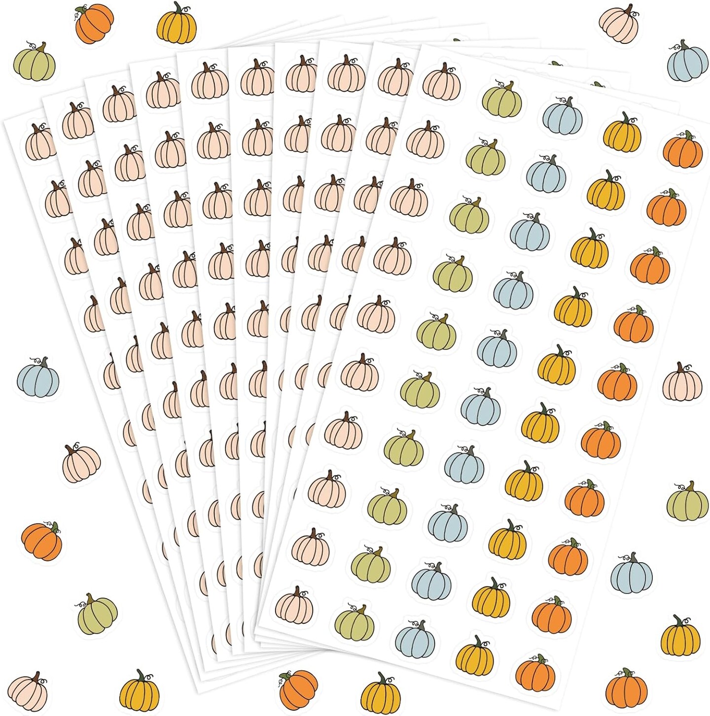 1500Pcs Mini Fall Pumpkin Stickers (Pastel) 8.1 x 4.1 x 0.2 inches