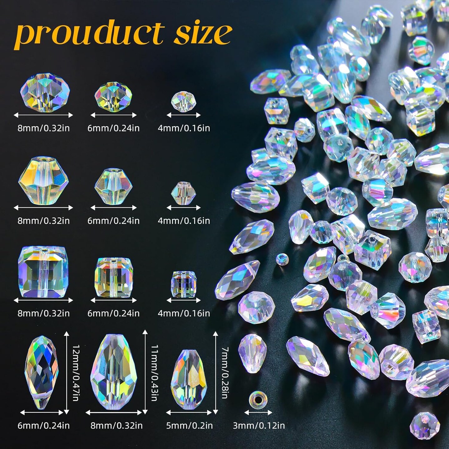 1500-Piece Crystal Glass Beads Kit – 12 Styles Bicone, Rondelle, Cube, Teardrop & 3mm Spacer Beads with Organizer Box for DIY Jewelry Making